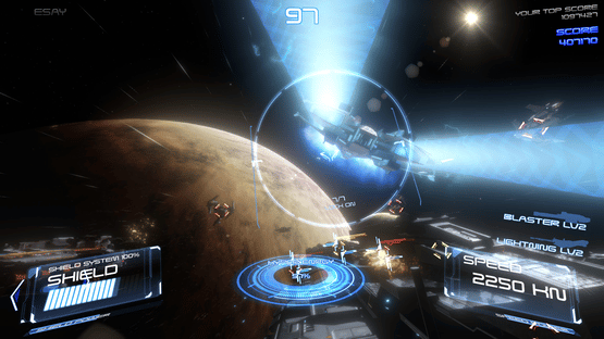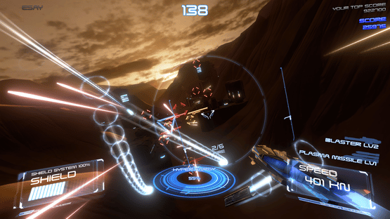 Hyper Storm is an arcade, thrilling shooter with backview. Defeat your enemies and compete for the best scores by controlling futuristic fighters that rush towards your enemies on a stage from ground to space.