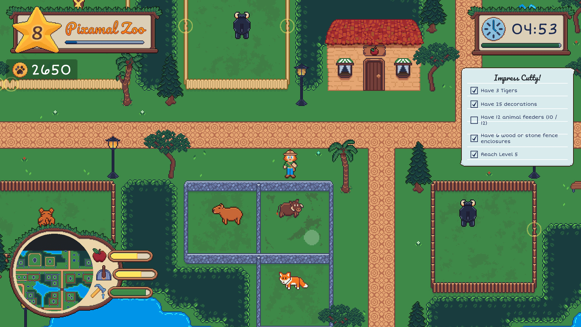 You’ve taken a job as the Zookeeper of a rundown zoo that will soon be turned into a carpark. Improve the zoo and fill it with adorable Pixamals to get more fame and visitors. Only you can save the zoo! So, do you want the job?