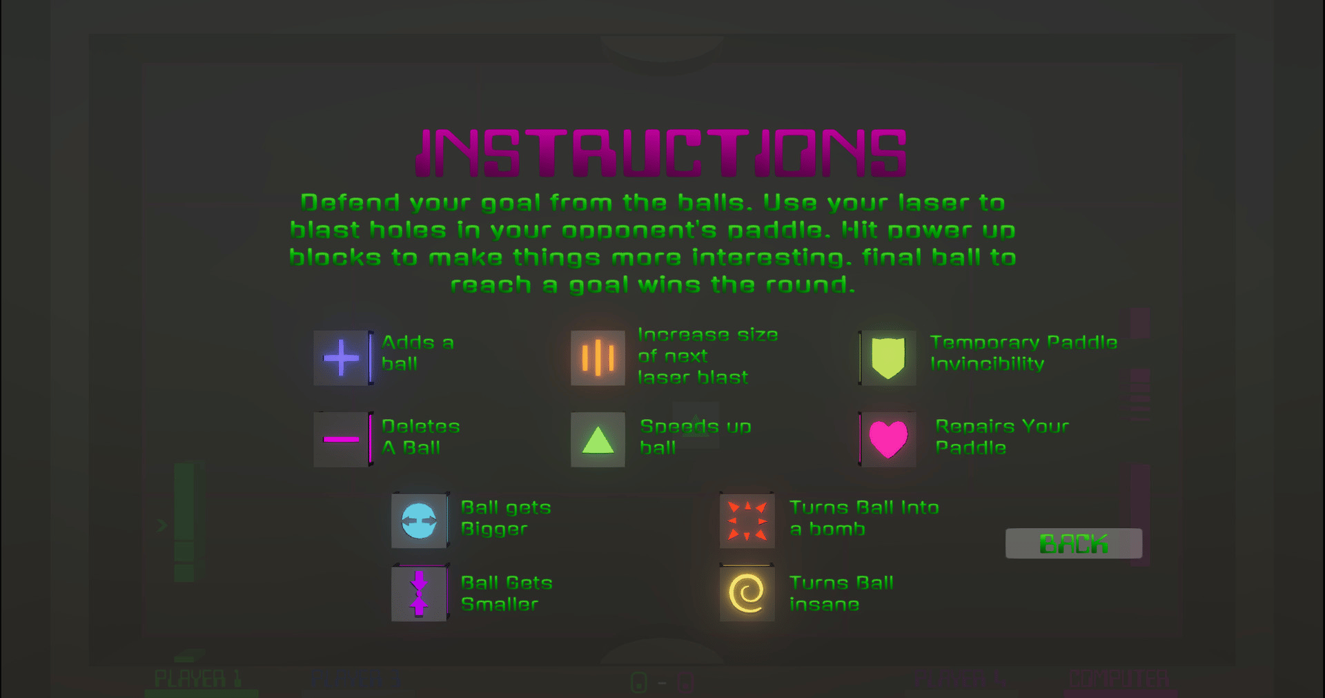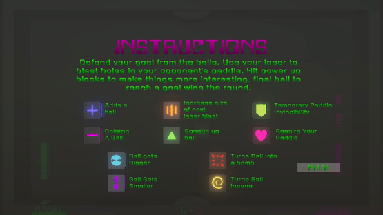 Laser Paddles is a pong game where you can destroy your opponents' paddle or see your own paddle destroyed. Lasers fly, power ups are activated, balls go crazy.