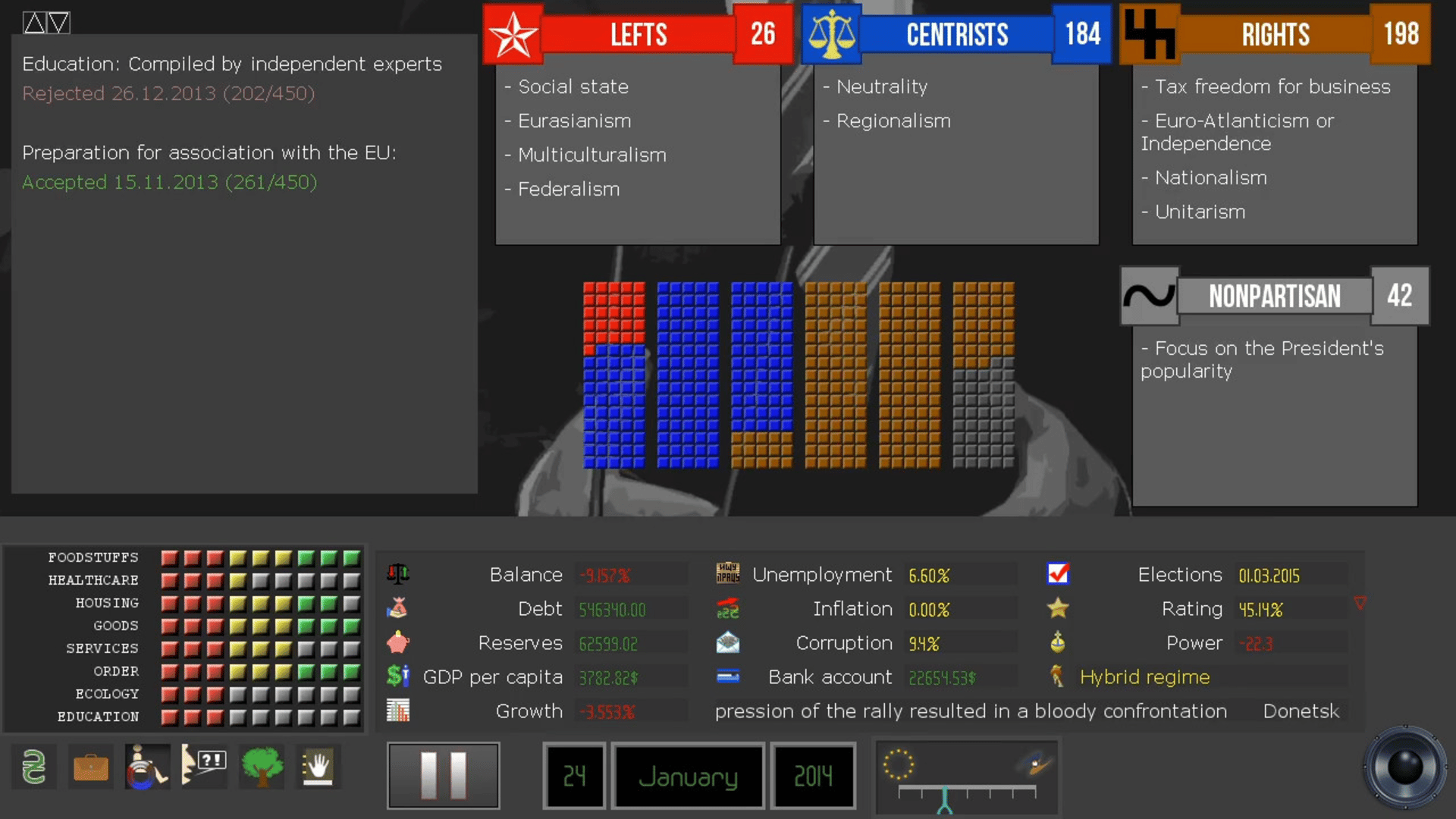 Lead a young post-soviet republic, torn by internal contradictions, and determine its historical path. EU or EAEU? Federalism or Unitarianism? Democracy or Dictatorship?