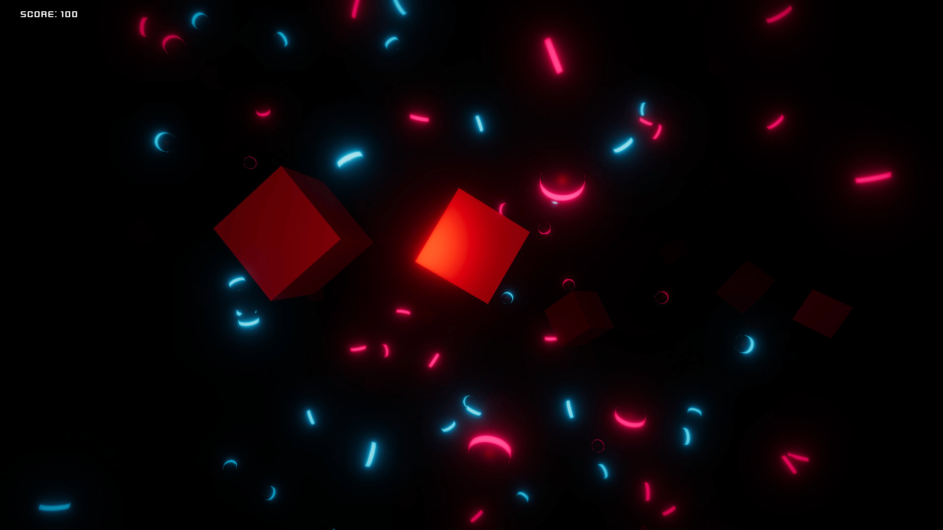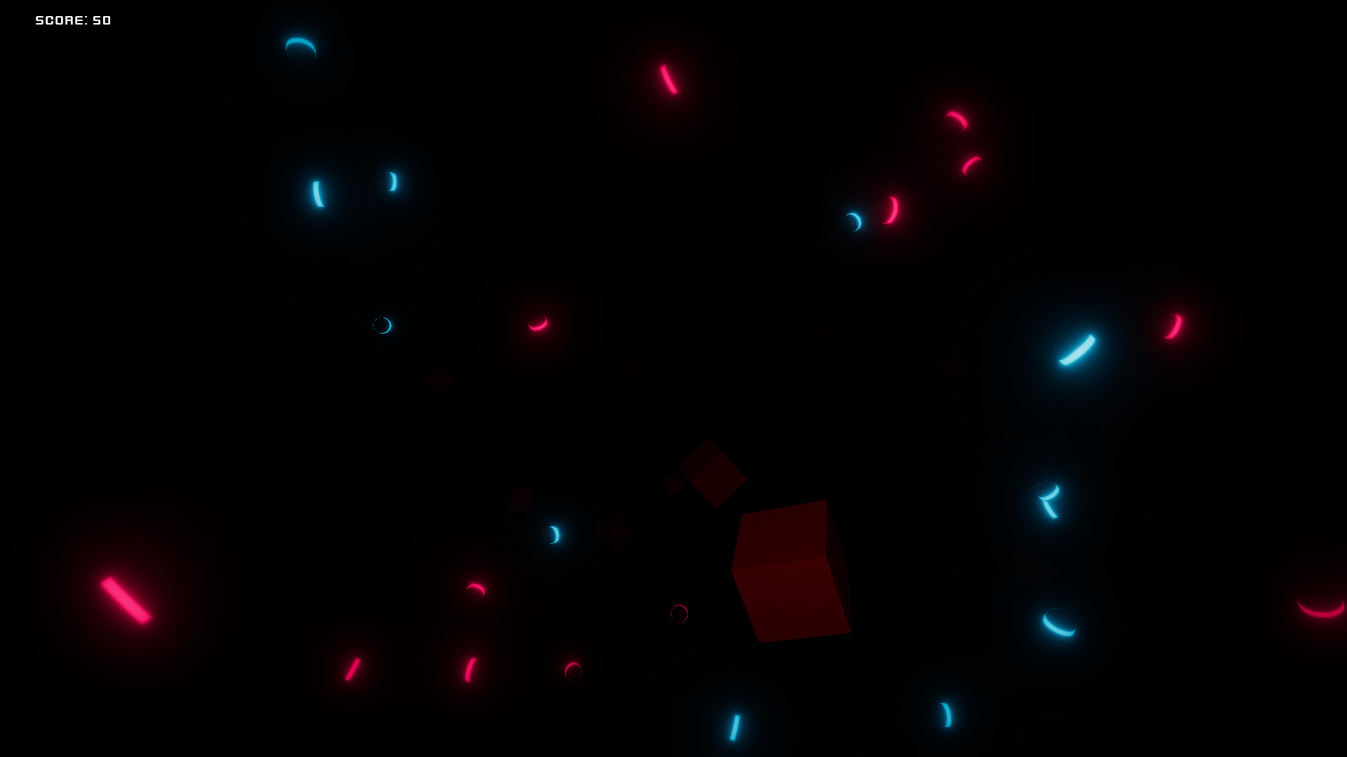 A simple running game. Dodge rotating objects, while trying to capture orange cubes for a score.