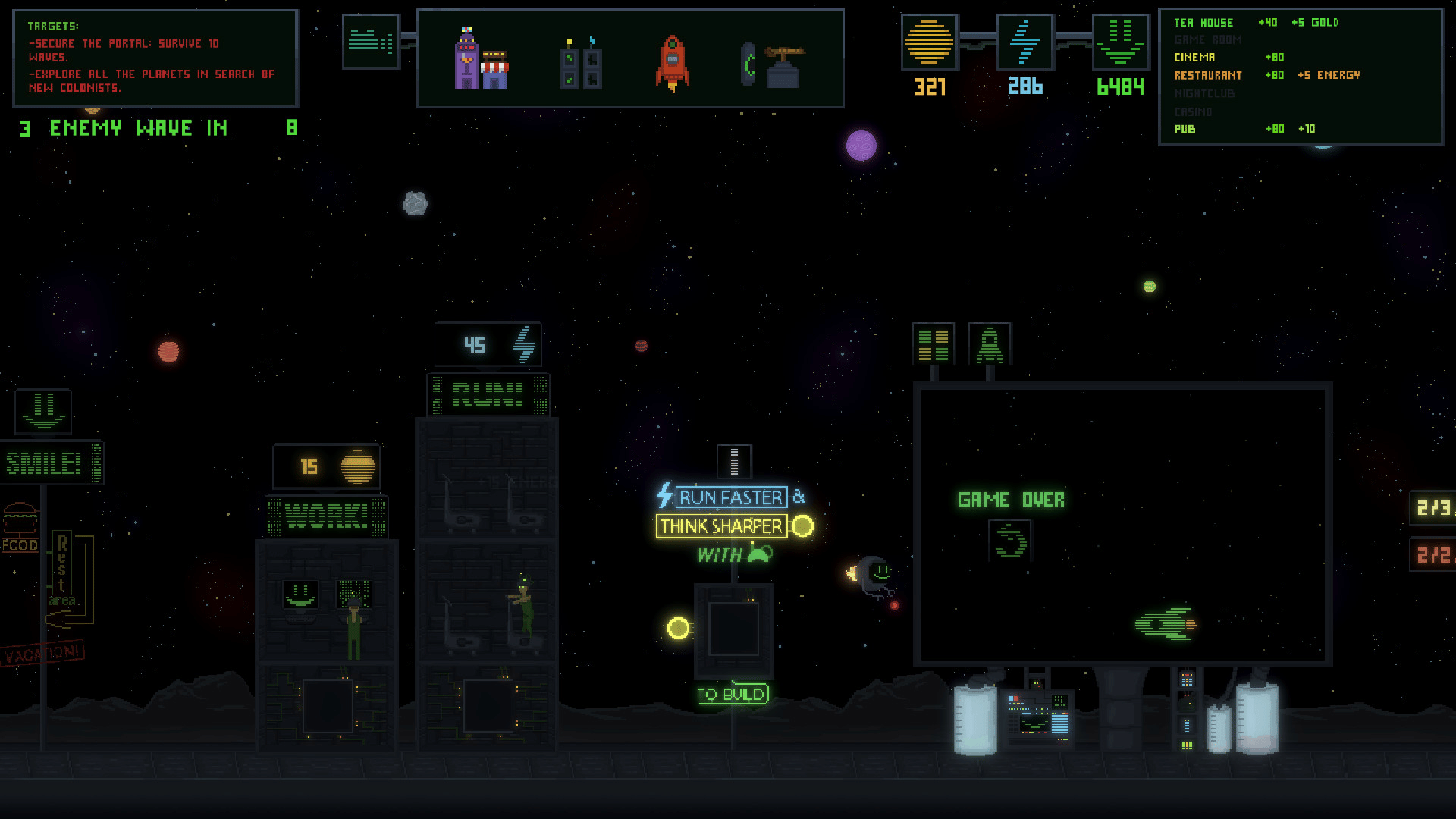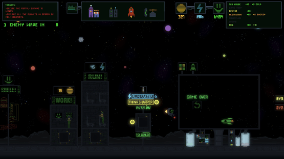 Mine gold and electricity in your own space colony, find new inhabitants in space, and eventually make them happy - because the energy of happiness through smile-to-fly technology can be transformed into rocket fuel!
