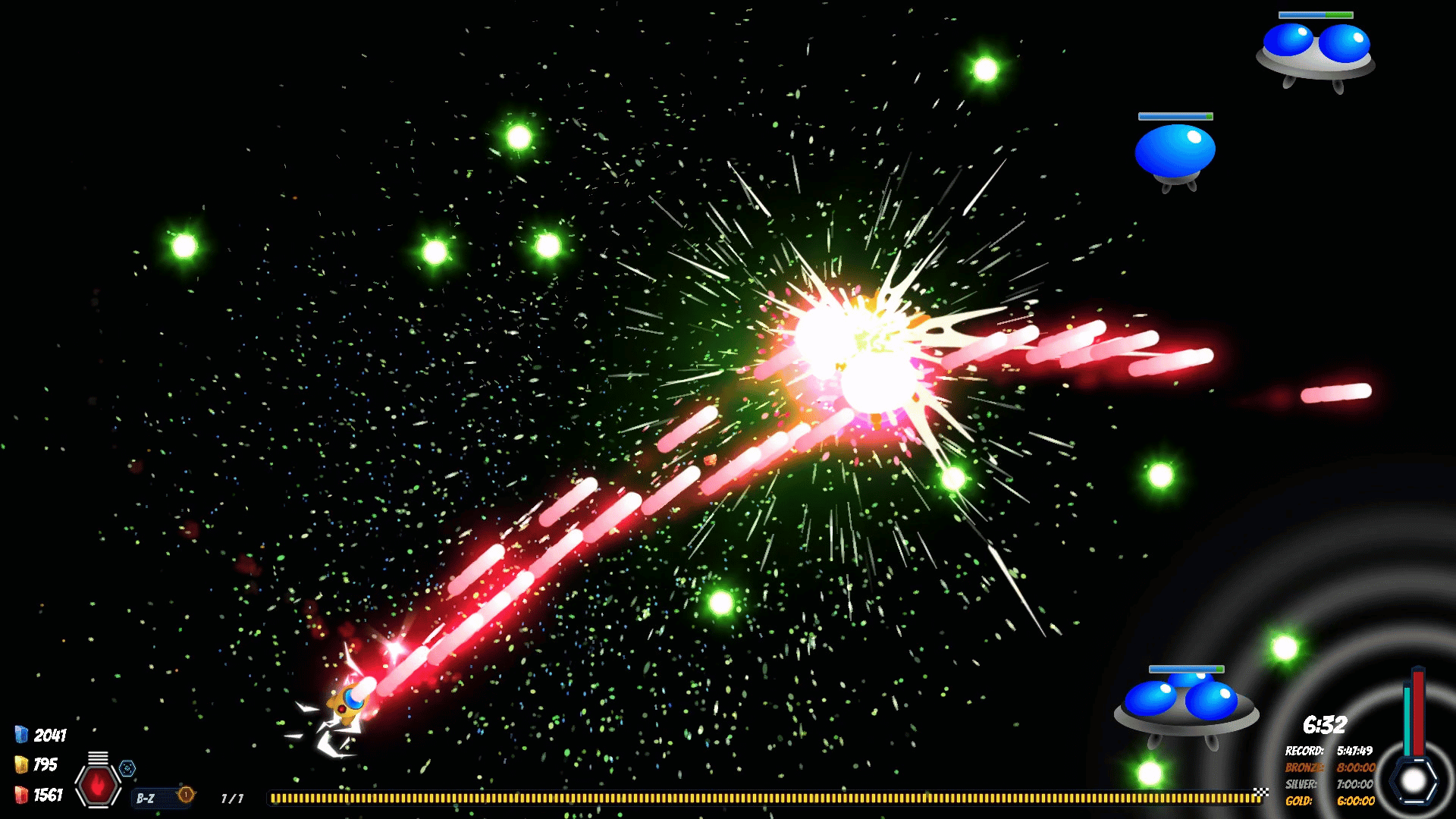 Old school is still extremely cool in the far future but spaceships have to get with the times to survive. Blast your way through space in this evolving twin-stick arcade-style shooter with an accessible attitude and a heart of titanium.