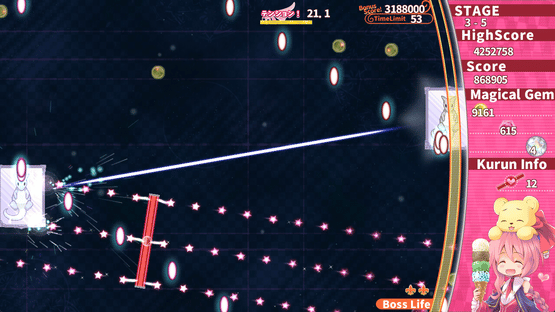 That magical girl has abandoned her costume and become a stick!!! This is an STG where the spinning stick is your ship. It can turn and attack in all directions! The strongest! But because it's a stick, you have to work hard to avoid bullets and walls! Defective!
