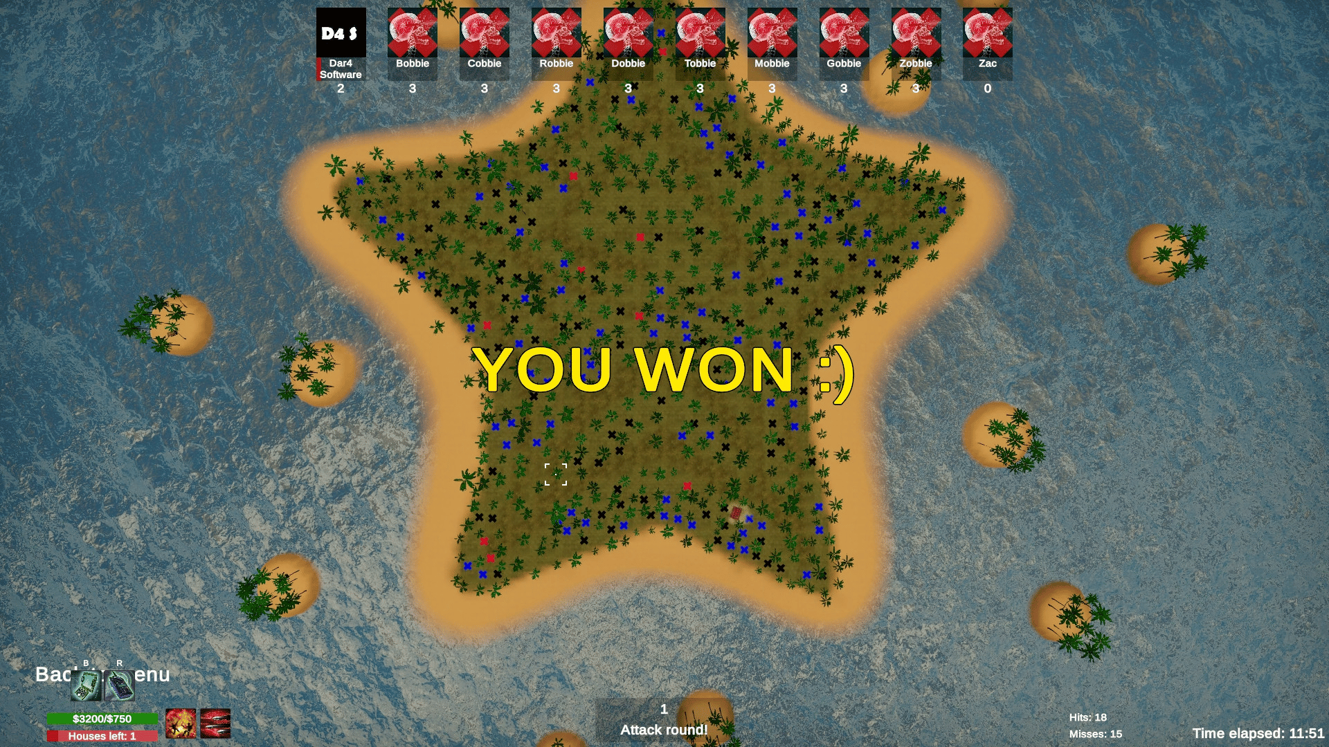 Rain of Fire is a game that puts 10 players in a Free-for-All match to protect their people from missiles. Eliminate enemies and gather money by day.Move your people from dangerous positions by night.Protect as many houses as possible for your people and be the last one standing.