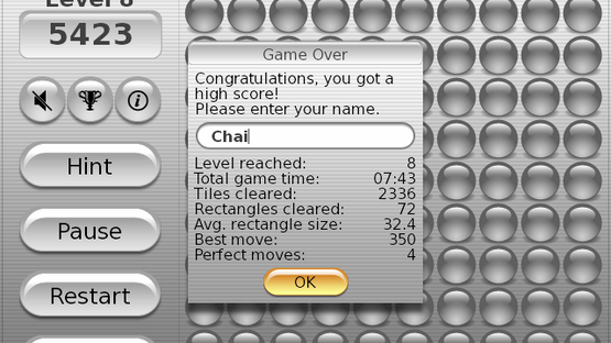 Jooleem is a simple yet extremely addictive puzzle game. There is only one rule: click on four marbles of the same color that form a rectangle. Time is constantly running out, but you can earn time (and points) by forming rectangles. The larger the rectangle, the more time and points are won. Jooleem is free and open source software.