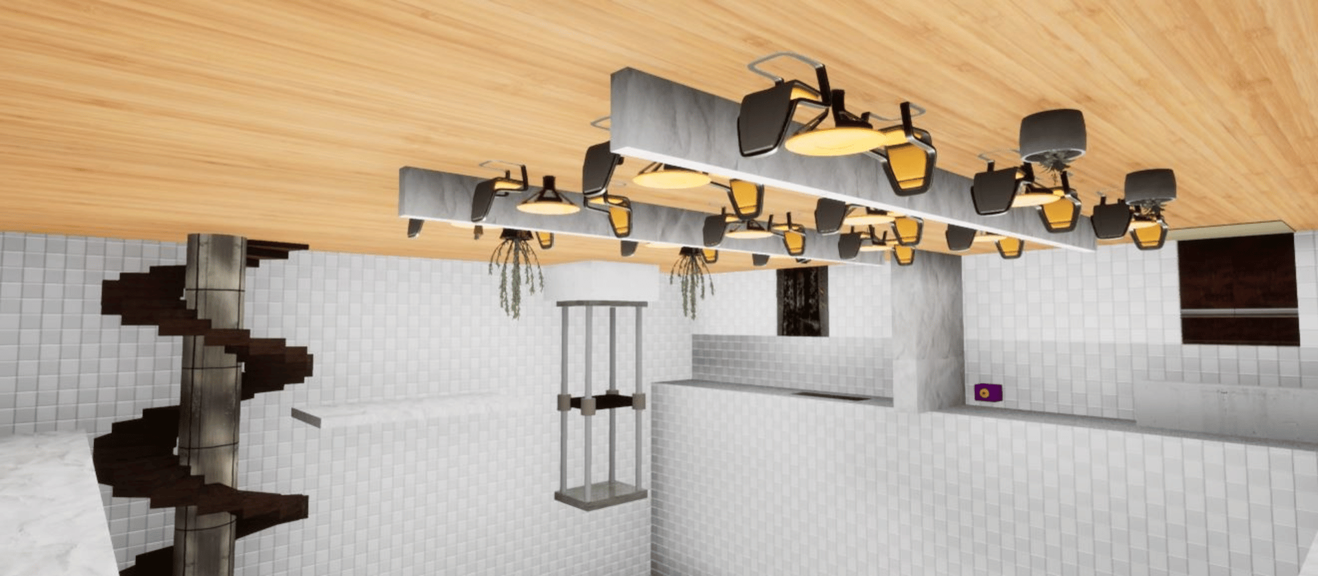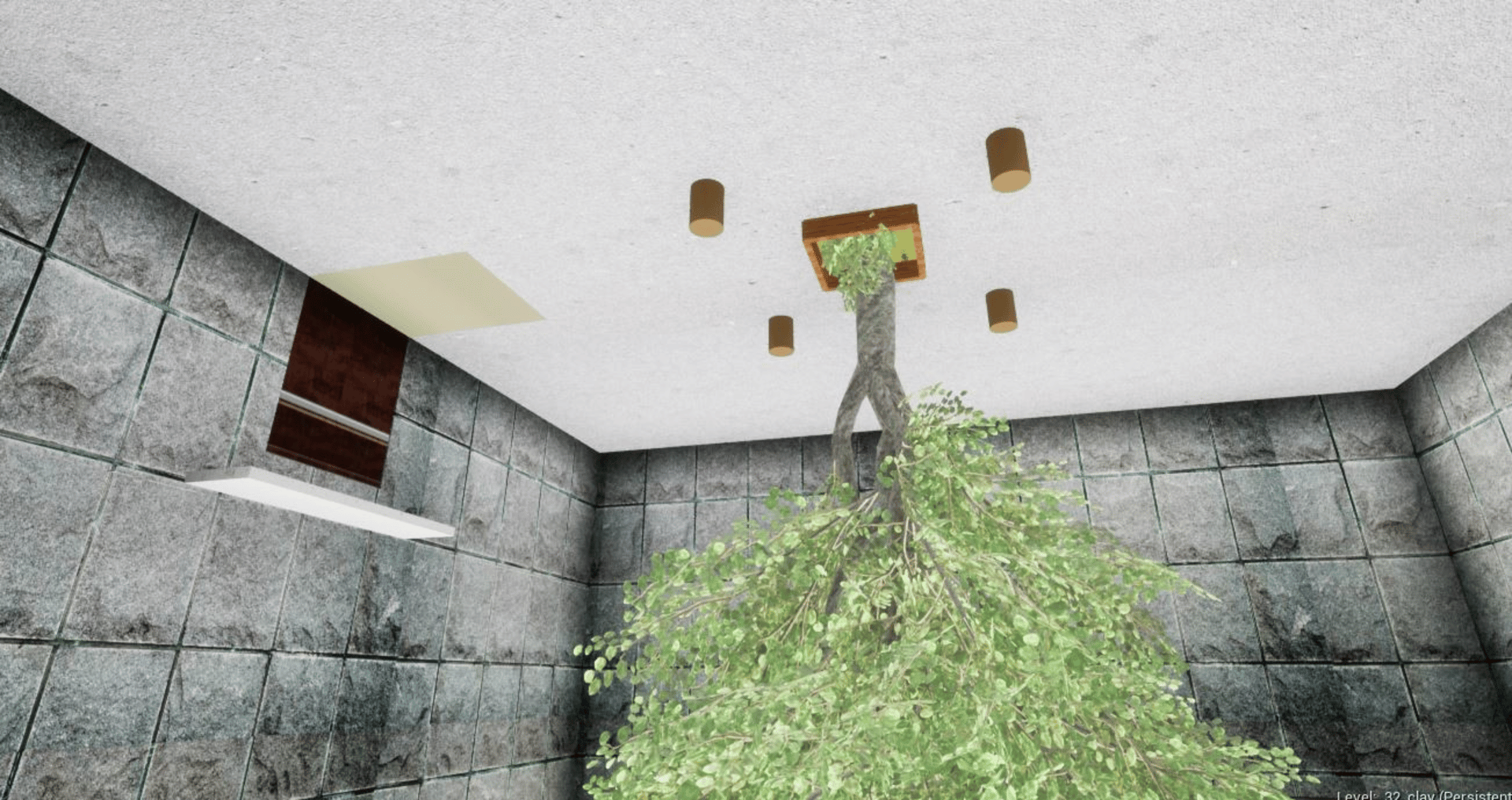 Walk around the ceiling and escape from the building.