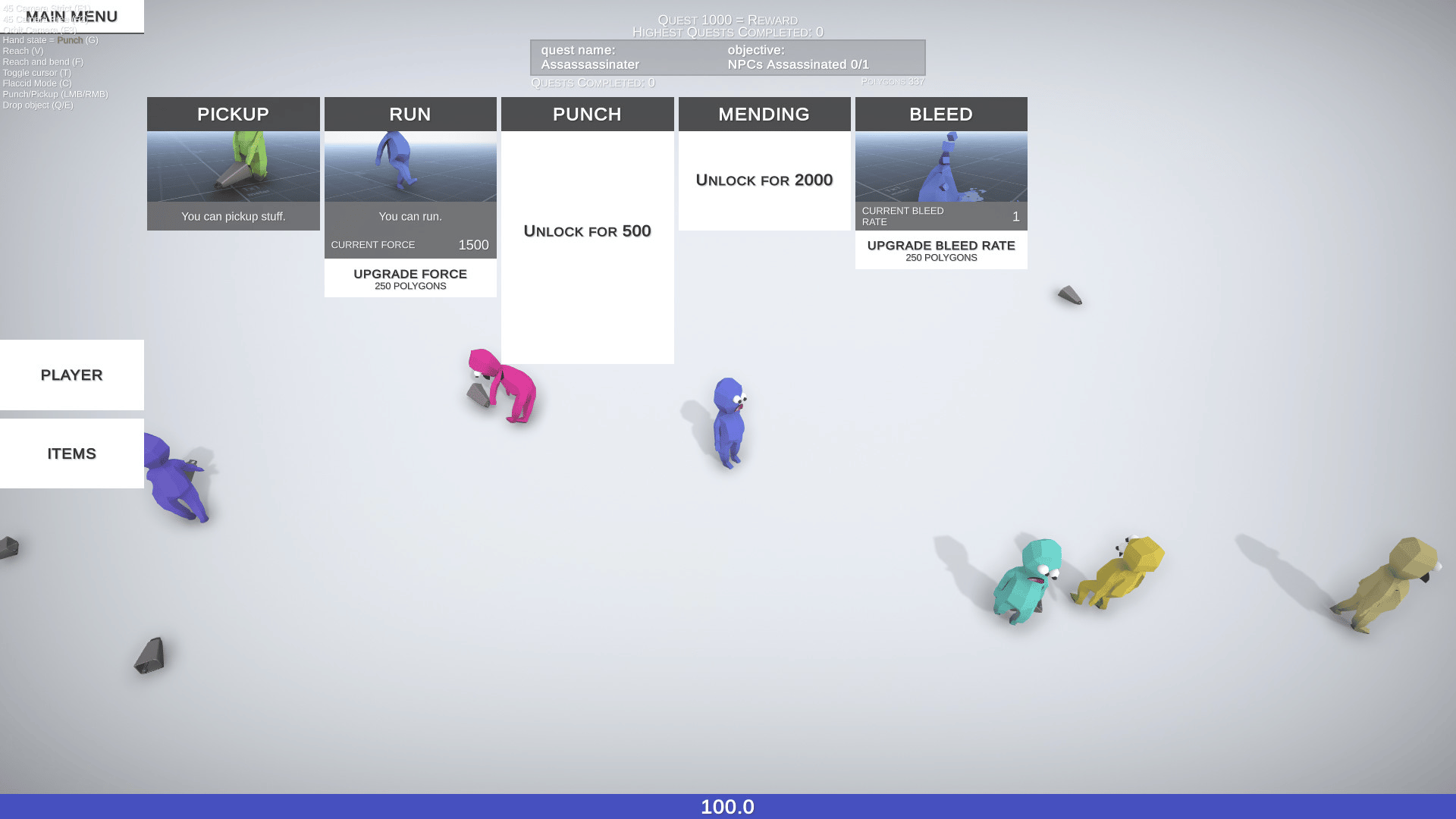 Pickup items, punch polygonoids and don't bleed out! Get to the highest wave!