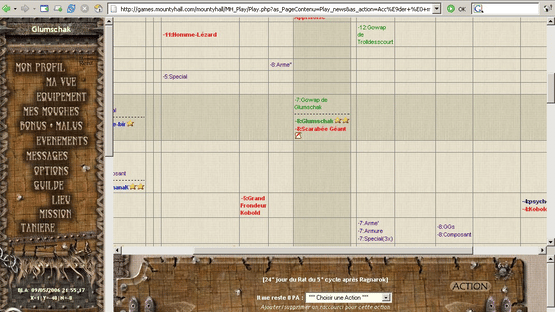 A French browser-based game where you play a Troll in the deep caves of the Hall. Fight monsters, gather gear, level up and discover the wonders of the world, alone or with your guild. Base turn lasts 12 hours, during which you can spend a pool of action points.