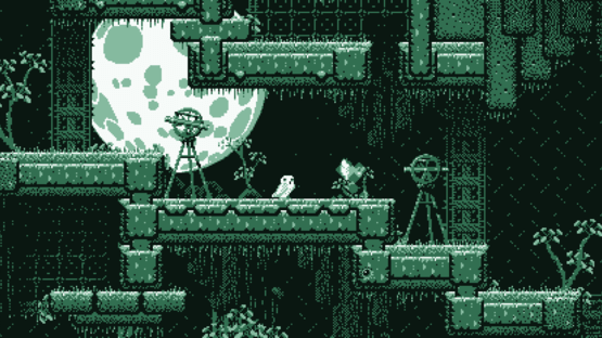 Venture into the haunted wilds with Gable, a little owl, as she sets out to rekindle the dormant relics of a land long abandoned to ruin. Puzzle, fight, and fly your way through the long lost gauntlets, and spectral denizens of the fearful Deep Wilds. Flying is a core feature of traversing the environment in Down Ward. The unique flight system allows unlimited airtime, but requires forward momentum and skillful maneuvering to maintain lift. Like the physics of real flight, as long as Gable is moving forward, she can gain lift. She can stay in the air as long as she has the room to maneuver around obstacles and maintain forward airspeed. Specters of the Deep Wilds abound, and obstacles, both puzzly and precisiony await! All in-game graphics are composed of 4 colors, and there are many 4-color palettes to choose from.