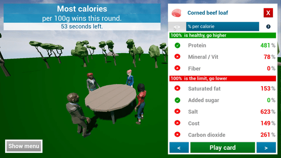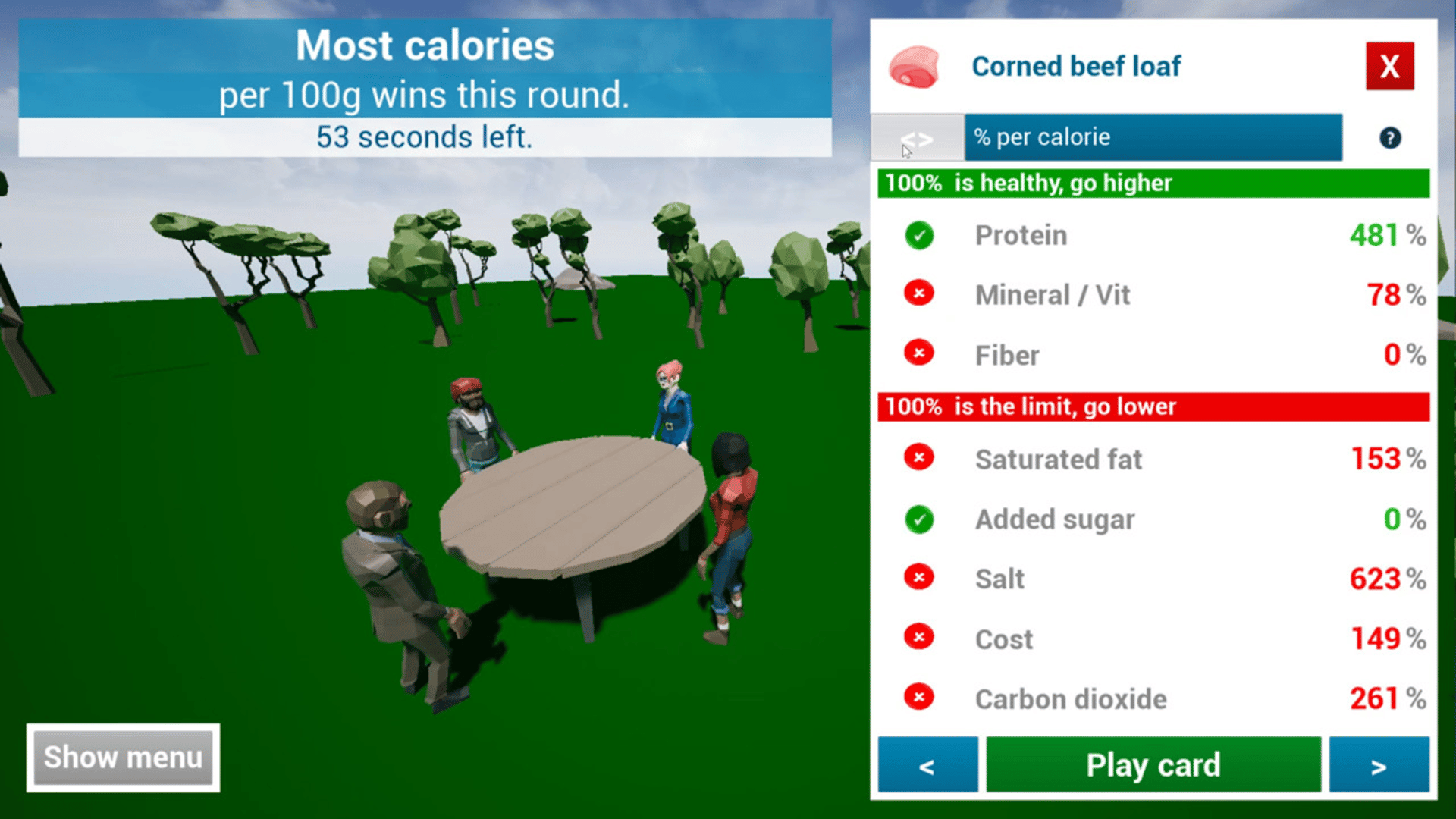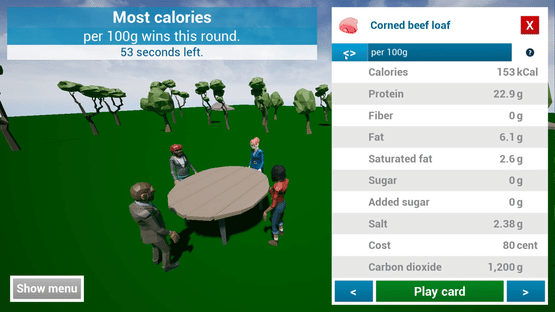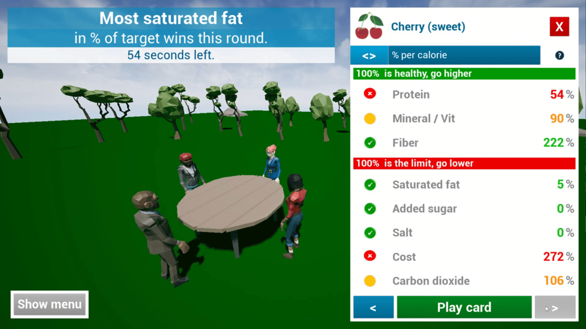 FIT Food is a multiplayer card game. Have fun playing and learning about food at the same time. How do food items compare on healthiness, cost, and environmental impact? You probably know more than you think - but there will be surprises to you as well.