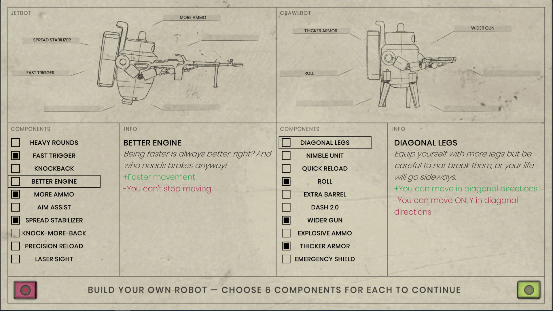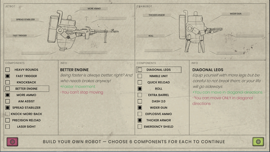Silicomrades is a couch co-op shooter for two players about malfunctioning robots fighting against unstoppable bureaucracy. Build your own robots from parts providing different bonuses as well as potential defects. Fight the evil robo-politicians and fall apart but do not fall back!
