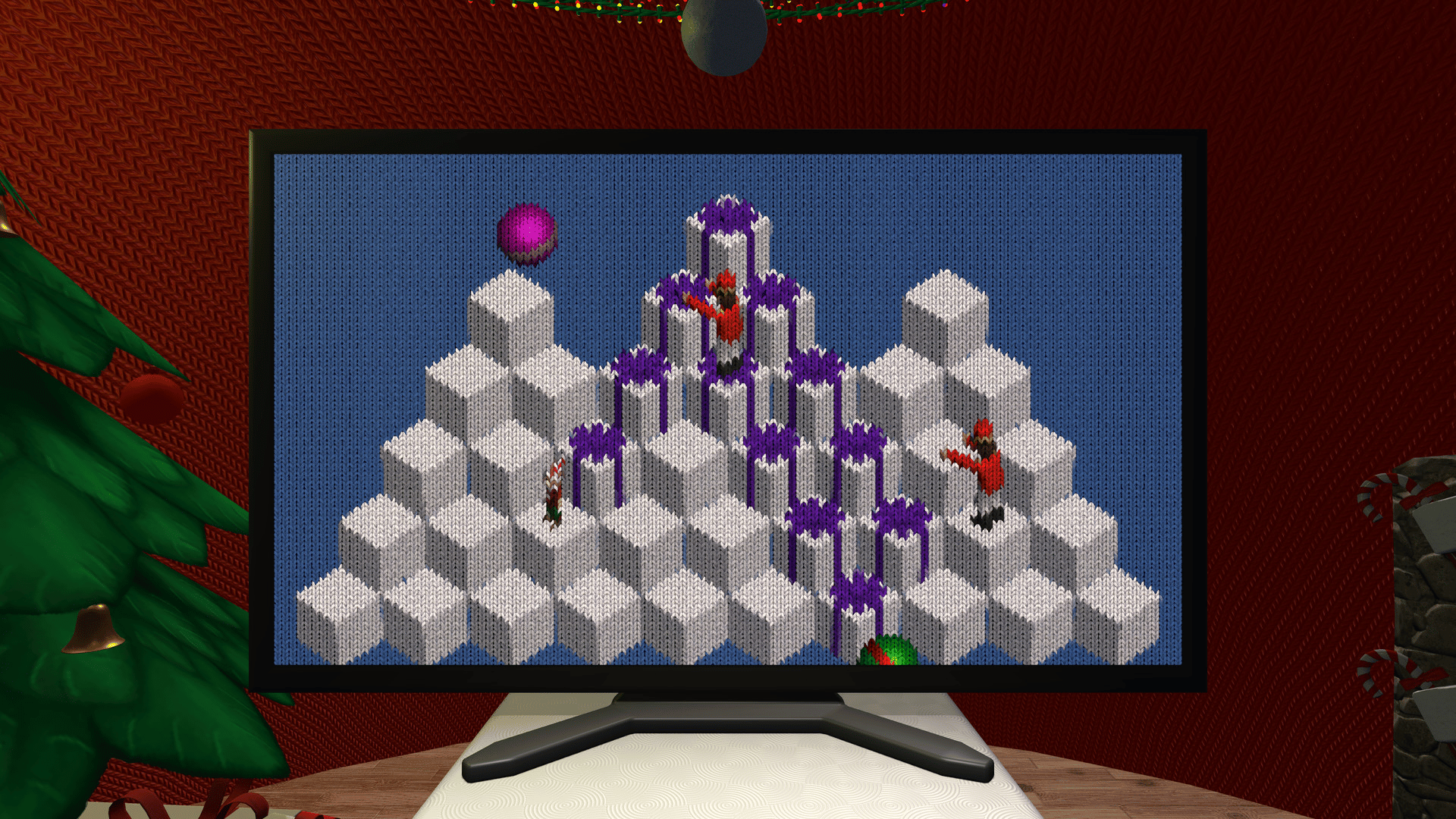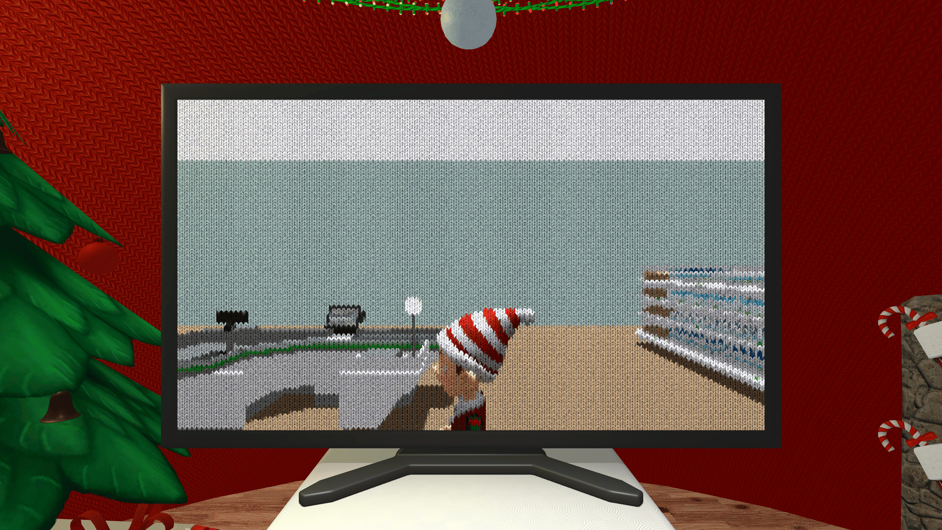 You are an elf: Alone and running out of magic. Your only hope is to get to the mall and catch a ride with Santa, but you won't be able to stay invisible long enough to get to the mall. Everyone is wearing ugly Christmas sweaters. Who will notice an extra elf in a sweater? Time to get sweater hopping to the mall!