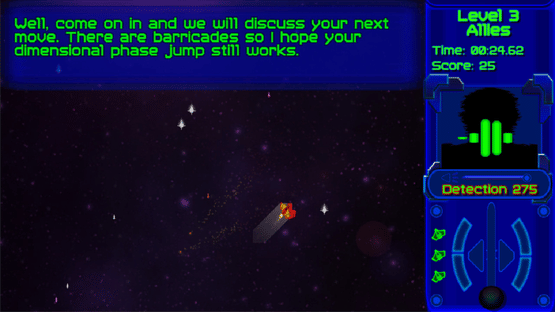 A speed running space adventure where you have no weapons, only your skill, speed, and reflexes to fly your way through. Missions can be completed as slow or as fast as your skill can handle so challenge yourself to be the speed running champion.