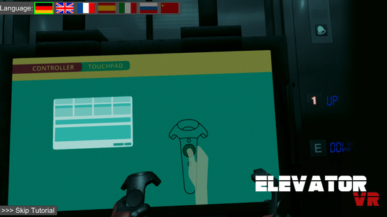 ElevatorVR is the first multi-language tutorial application for VR Arcades. The game explains the controller and button layout, but also gives you an altitude experience.