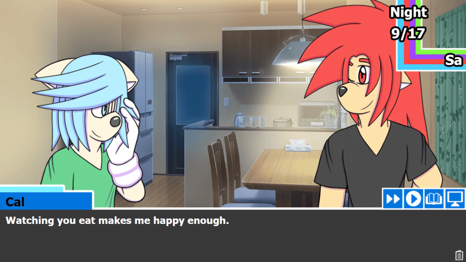 Dive into the world of Aloe and Cal and experience a gently paced visual novel about the importance of food. With thousands of fun choices to make, over 100 CGs to look at, and 7 colorful characters to meet, you will undoubtedly walk away satisfied!