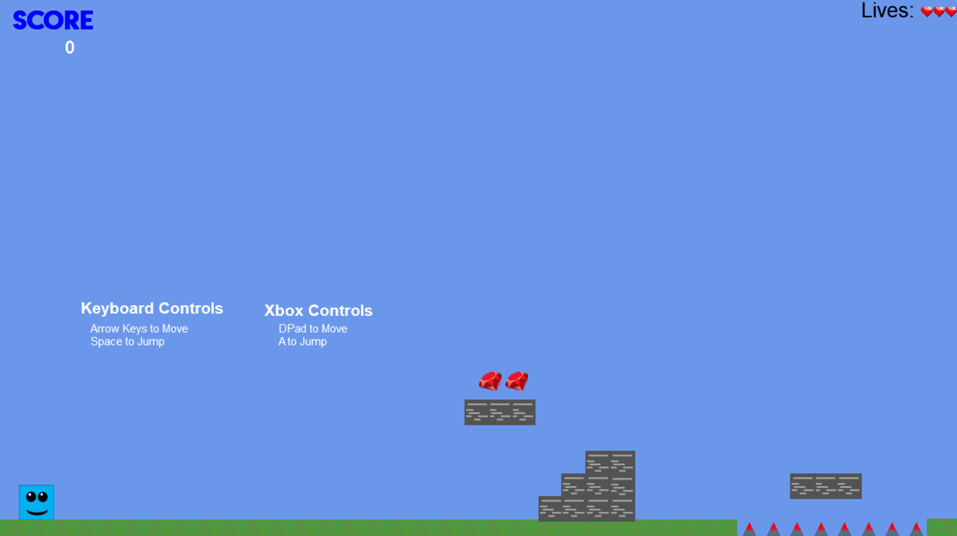 Jump and run through 8 levels in this simple 2D platformer starring BlueBoi!