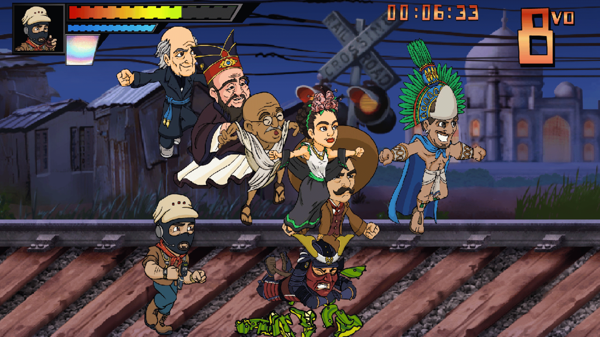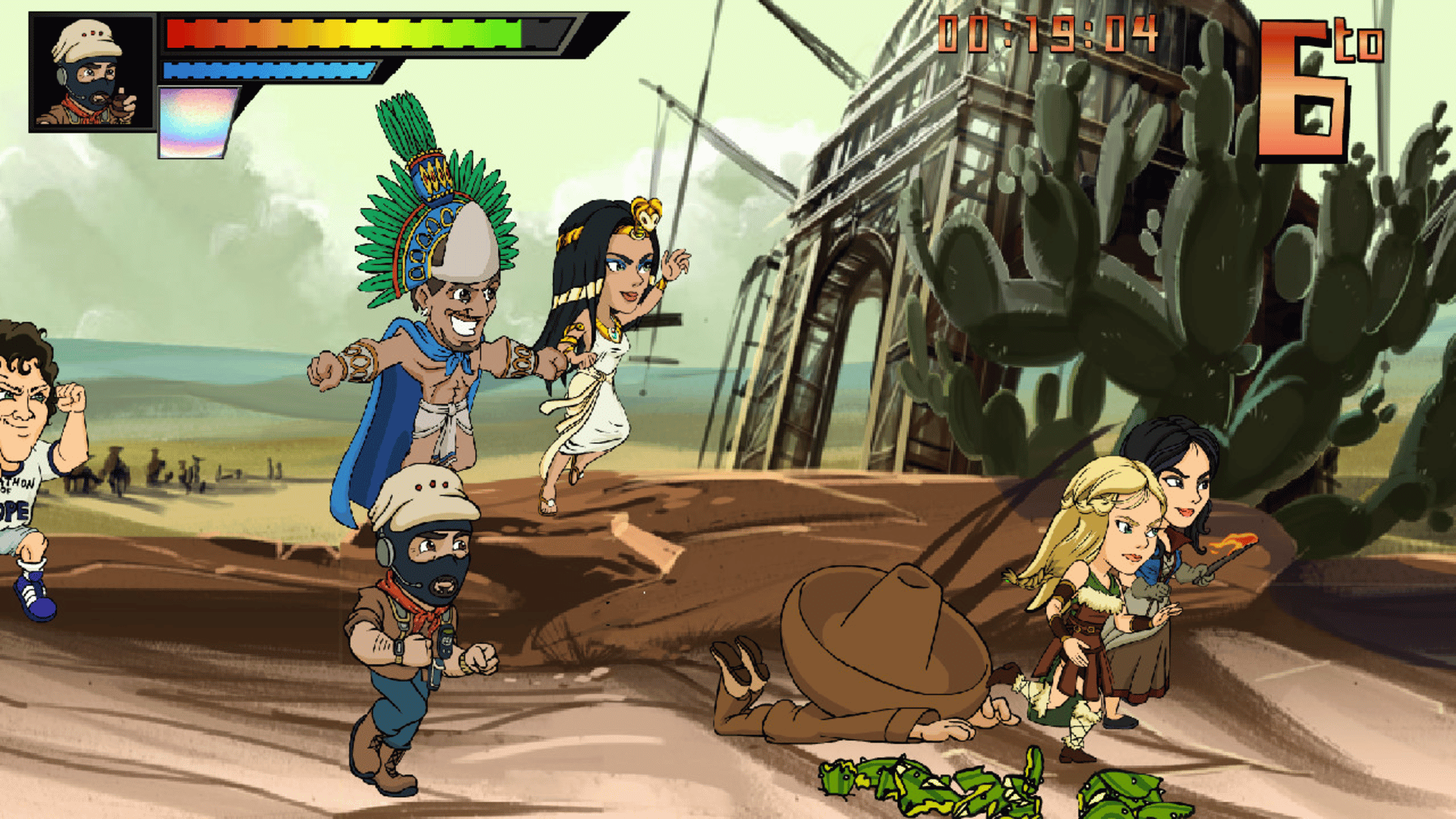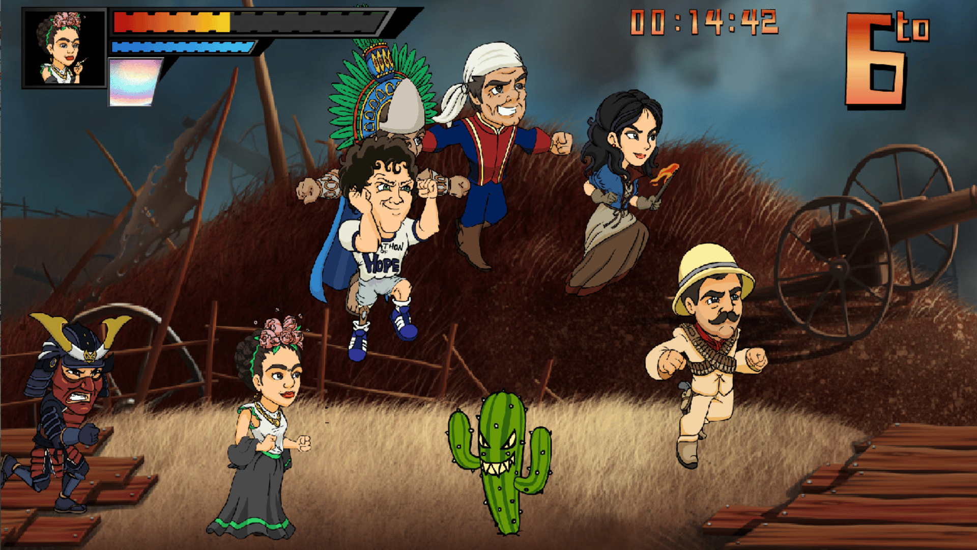 This is a very funny 2D racer game that mixes karting and running gameplay, with historical characters across the world!