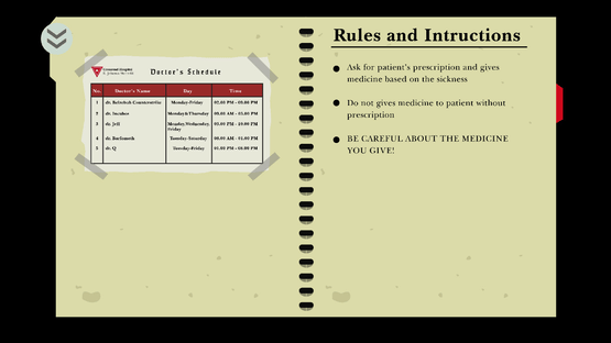 Welcome Intern, to Hell's Pharma! A lot of sick demons are coming here to get cured. Read their prescription and make sure you gave them the right mixture of potion! Don't do illegal stuff and keep doing your job! Good luck!