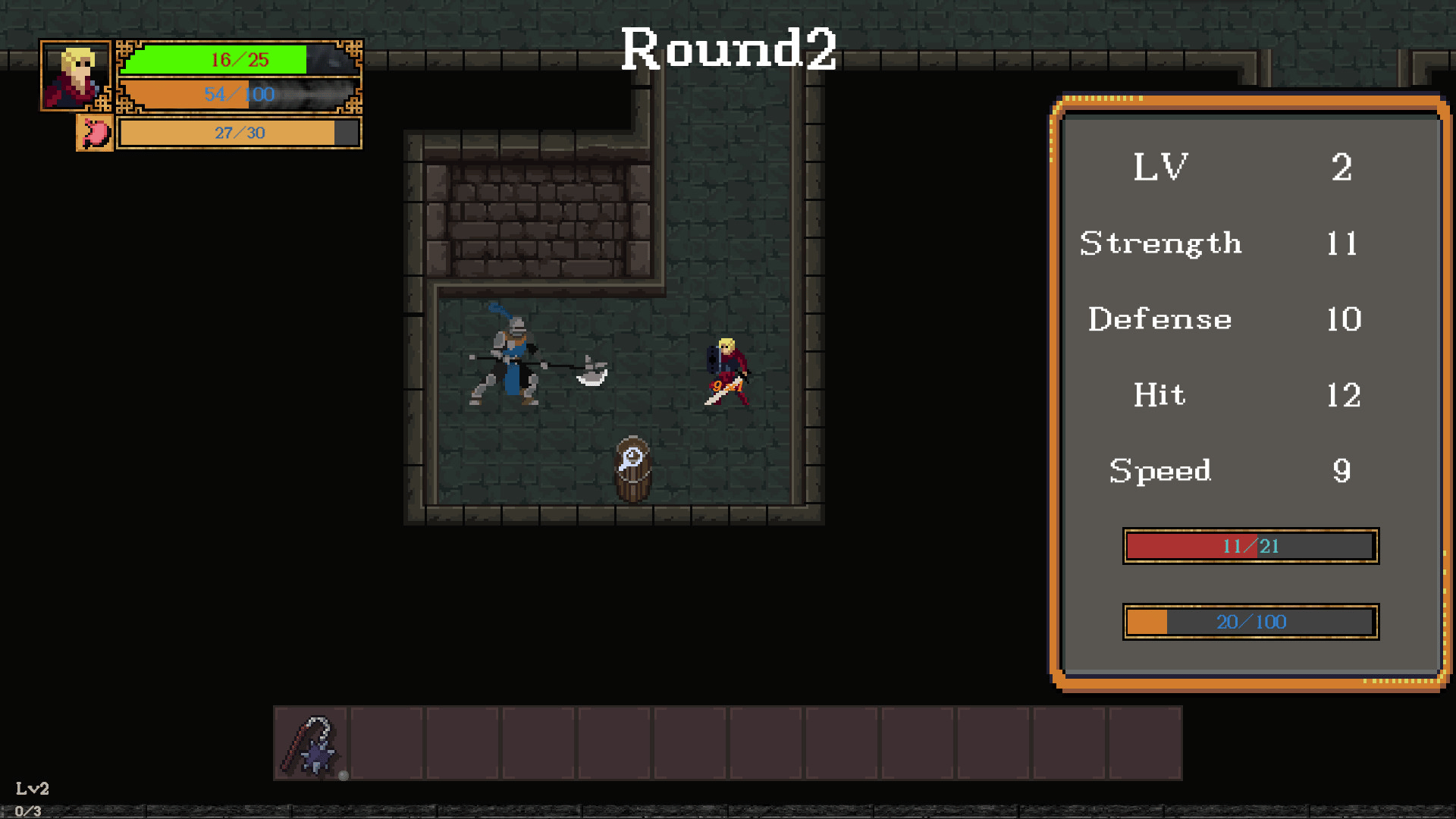 You don't know why you are locked in this castle, but you know you should escape here. Enemies are everywhere, and they will never let you through. Their only purpose is to prevent you from leaving. All you can do is find for food and weapons in each room, improve your attribute ability, defeat them one by one, and leave here.