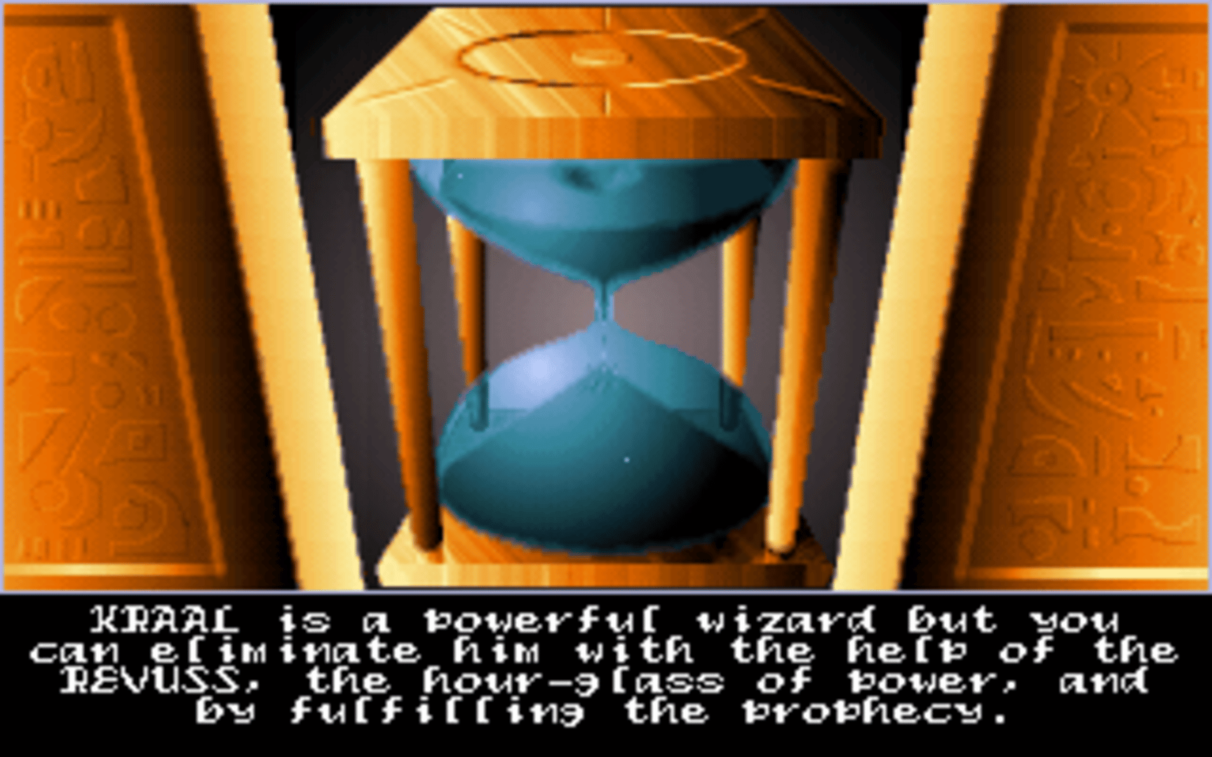 This point and click adventure takes a fantasy setting, in which you play a Wizard deemed to be 'good' taking on a less good one. To fulfill the prophecy you have been given in a limited time of 3 days, he must go on 3 quests, solving various puzzles along the way to be rewarded 3 grains of sand, that he must place in a hourglass to kill an evil wizard. Objects around the levels are always detected by the cursor, making each screen and the challenges within quick to comprehend. Generally you have to solve each puzzle in sequence.