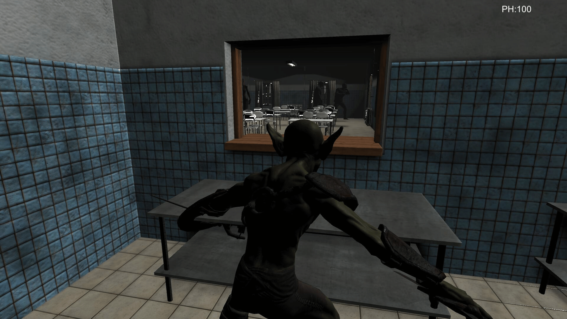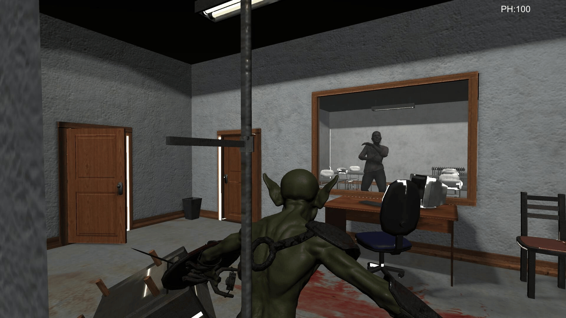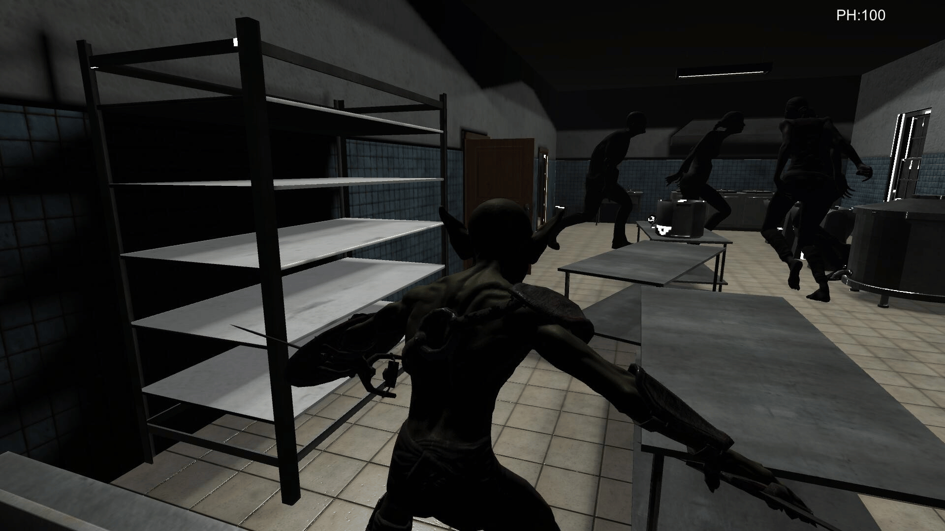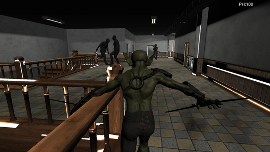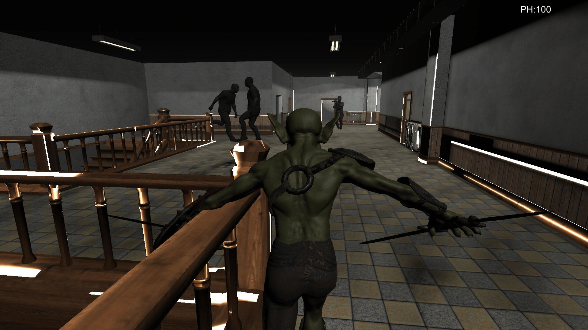 This is a third person action game,The player is in a building full of mutant humans,Players are free to explore the surrounding area,Players must maintain their health,Players can evade enemy attacks or kill enemies.