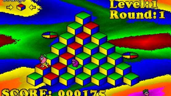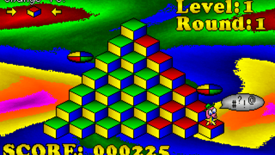 Super Qube Hopper is a single player, shareware, Q*bert style game in which the player has to bounce Qubey around the screen changing all the blocks to a target colour. Naturally there are baddies trying to stop Qubey in his quest and contact with these will cost a life, the player has two lives in the shareware version of the game but in the registered version they have four lives and gain another life for every five thousand points scored. The game is mouse or joystick controlled, has sound and voice effects and a high score table. It occupies a fixed sized window on-screen within which the game plays. The game also comes with a level construction set.