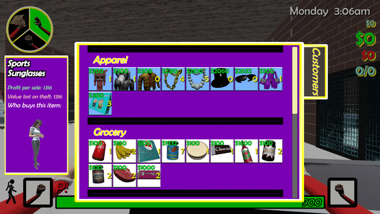 I'm Calling The Cops! is a first-person cartoony action strategy game in which you manage a small store. Customers buy items but they also steal them! See how much profit you can make in an in-game week (17 minutes IRL time).