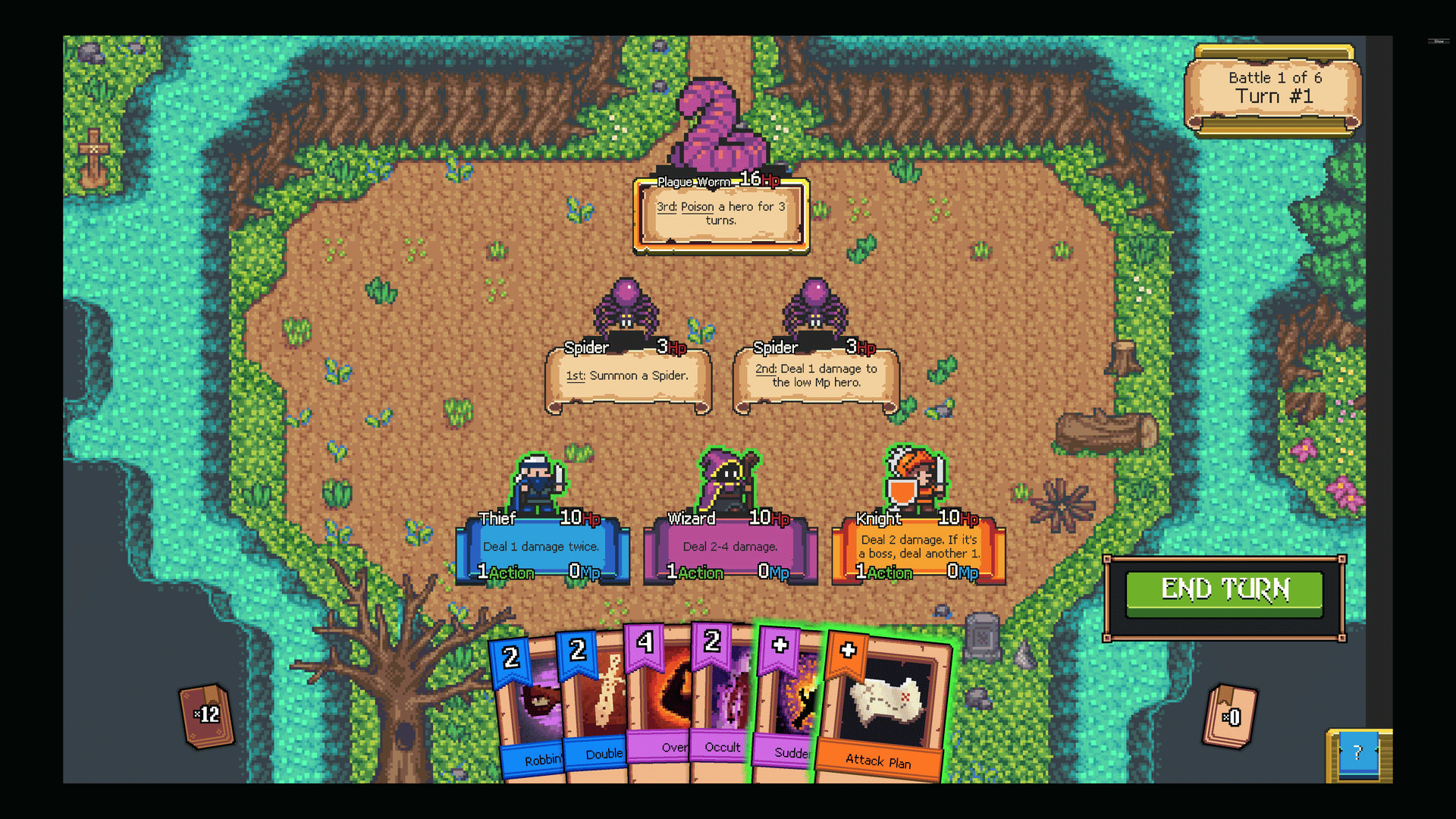 The land is in danger, and retro RPG card strategy is its only hope! Gather a party of three brave pixel heroes, each with unique spell cards. As a single player, adventure through a series of monsters and tactical challenges. Fall in battle, and your story is cut short.