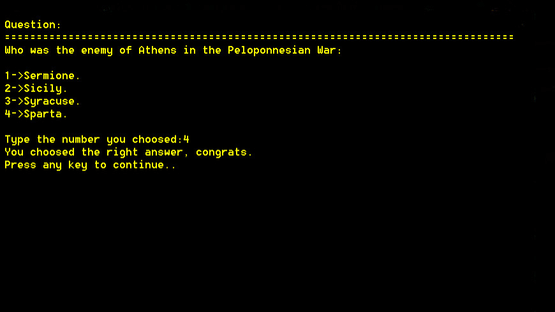 Prison of Son is a text based game and its purpose is to give a small awake to users about their knowledge in history and geography of the world. So have fun and enjoy it.