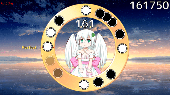 *これは、天使の輪っかの形をテーマにした音ゲーです ノーツが赤い判定線に重なったら、色に合わせてタップしましょう ハープちゃん達が天使の輪っかの輝きを、音楽の力を使って取り戻すストーリーが今始まろうとしてます…
