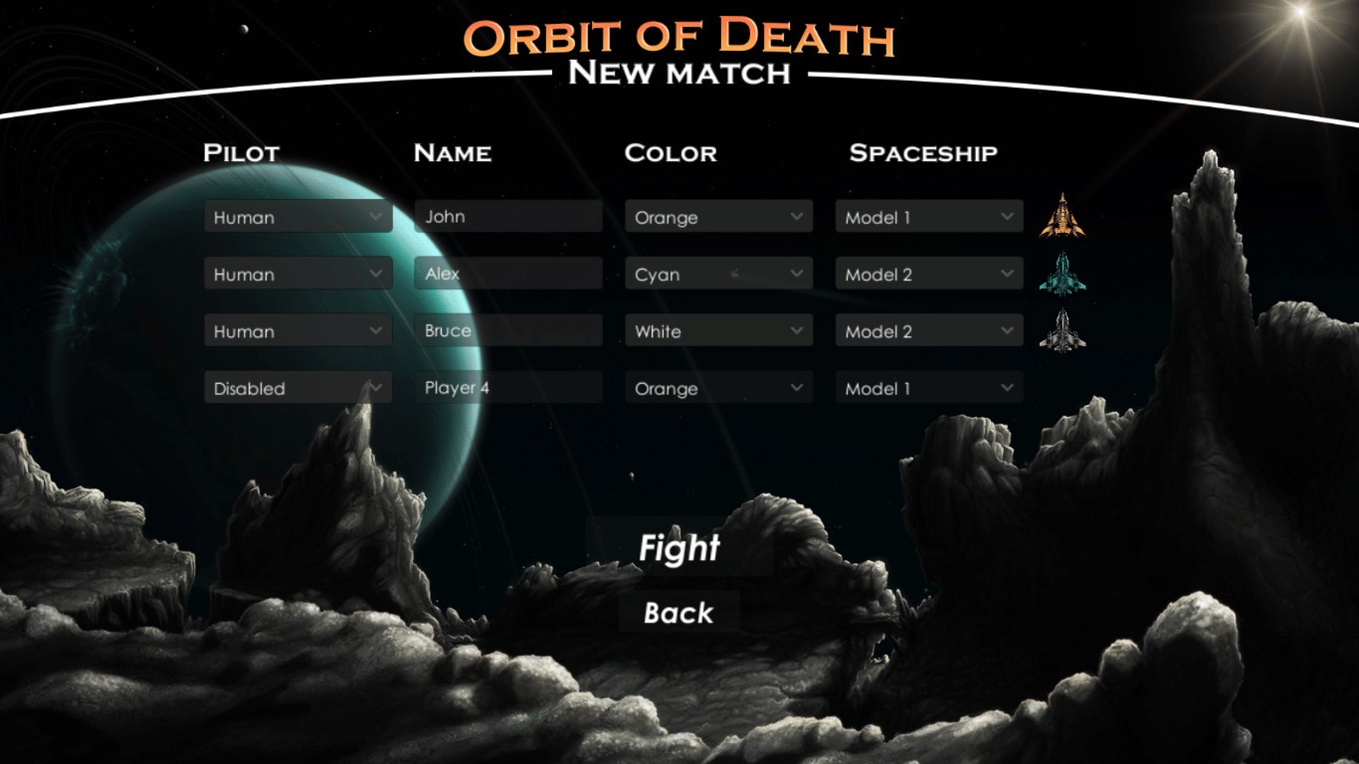 Dynamic space battles the gravitational field of a star. Up to 4 players at one PC (hotseat).