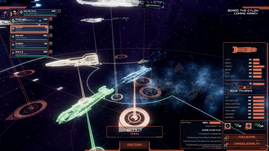 The people of the Twelve Colonies believe that Colonial forces are keeping the Cylon threat in check. In reality, the Ministry of Defense loses ground every day. Under Atropos’ command, Cylon attacks have become precise and terrifying. Perfectly timed ambushes designed to cripple communications and logistics. Efficient and methodical. Commander Nash and the crew of the Galactica have to keep up the pretense of the good fight, never revealing how close the people back home are to the knife’s edge. Meanwhile, Admiral Sarkis has one last plan that could finally bring this war to an end, or doom them all. It is time to activate the Ghost Fleet Offensive.