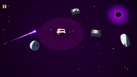 Embark on a journey as a small comet through a colorful galaxy and use black holes as a wormhole to explore over 20 different levels! Use the planet's gravities and galactic currents to hit the comet past various celestial bodies into the black hole and get warped to a new area.
