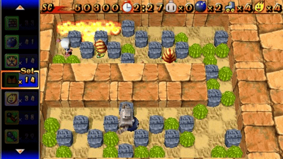 Bomberman arrives on the PSP with nostalgic gameplay and a new twist for the next generation of wireless, mobile gaming. An ominous black shadow is creeping towards Bomberman's planet, and sudden attacks by a mysterious robot army have brain-washed the inhabitants of surrounding planets, causing mass chaos. Bomberman must embark on a new adventure through the galaxy to restore peace and order. Normal Mode: the latest Bomberman complete with a new story and 100 levels featuring a new Item Stock system allowing for the collection and strategic use of more items. Classic Mode: based on original classic Bomberman featuring over 50 different levels. Multiplayer Battle Mode: up to 4 players can fight for survival in a variety of highly customizable games across 20 different stages via wireless ad hoc mode. Game Sharing: Up to 4 players can battle from 1 UMD game disc.