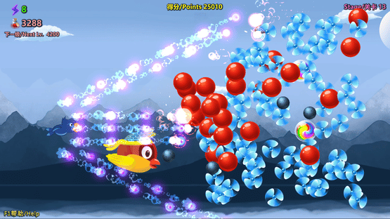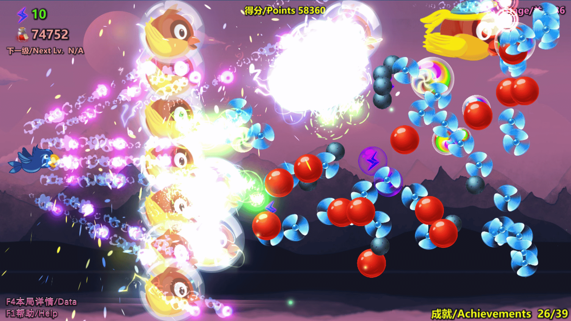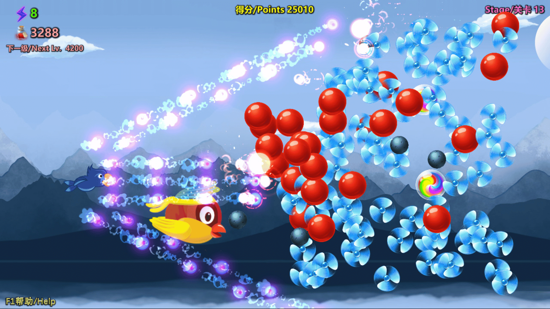 You are a little bird wandering through layers of space. In the face of the sudden arrival of an army of balls, you can only rise to the occasion and try your best to eliminate these cute but detestable enemies.