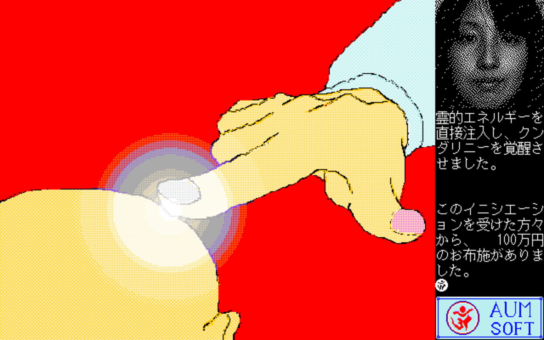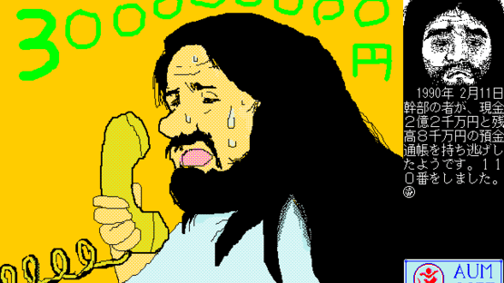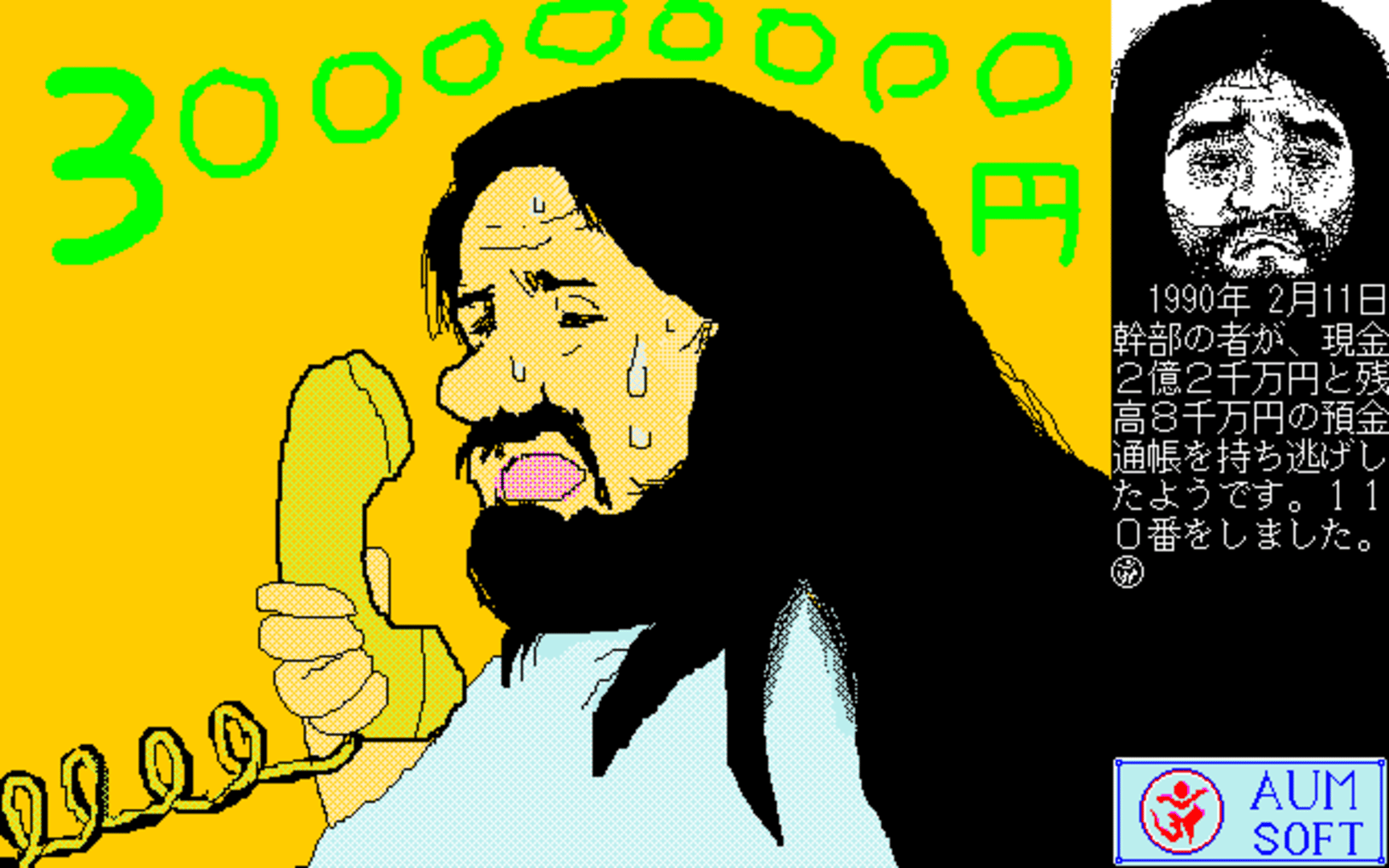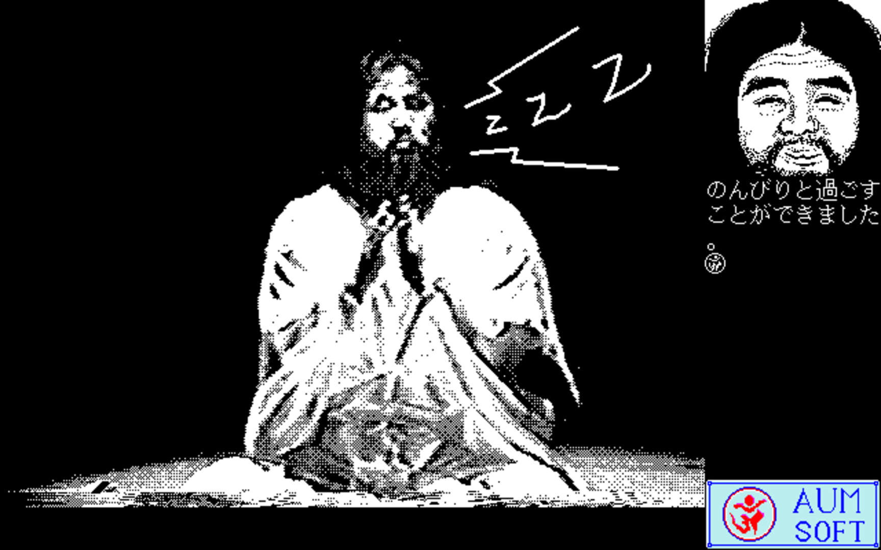 Kamikuishiki-mura Monogatari is a satirical Japanese doujin resource management strategy game developed by HappySoft and published by Aum Soft. Game satirises the Aum Shinrikyo cult and the 1995 Tokyo subway sarin gas attack orchestrated by the cult. A common misconception is that the game was produced by the cult as propaganda, whereas Kamikuishiki-mura Monogatari actually portrays Aum and the sarin gas attack negatively, mocking its members and showing footage of 'humiliating' media coverage.