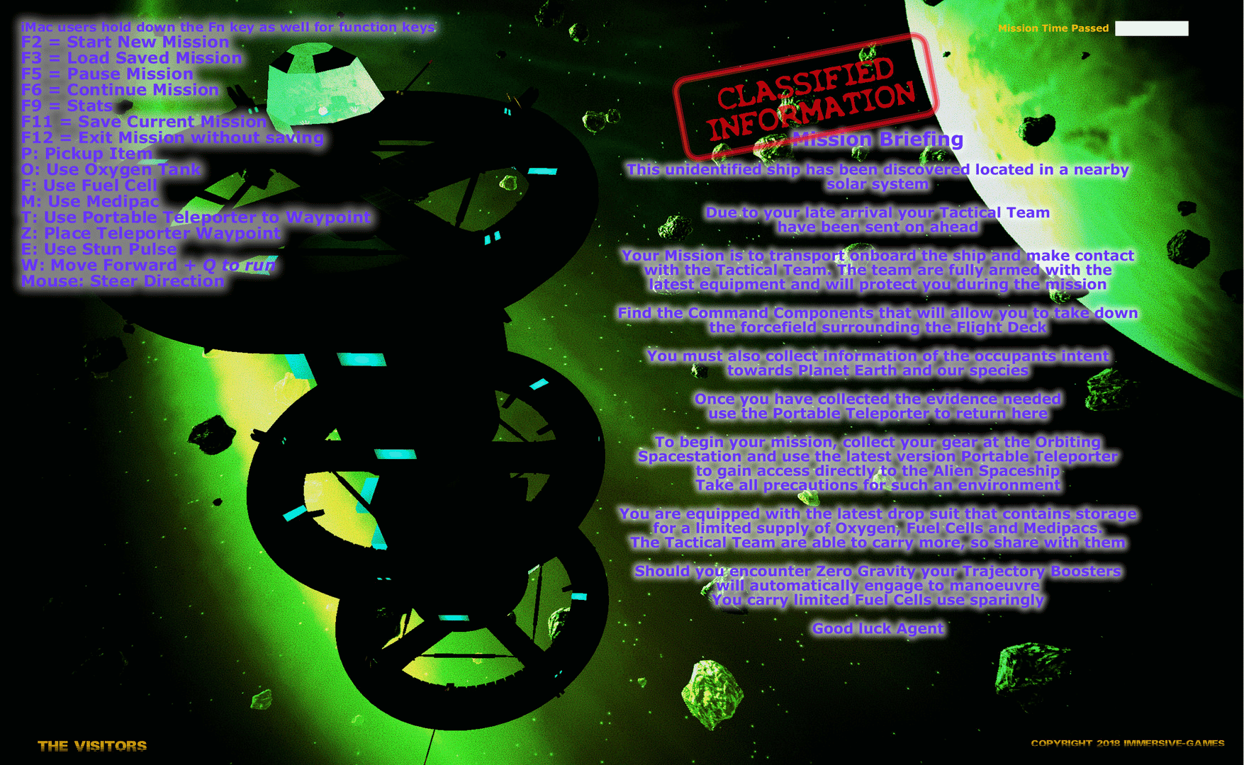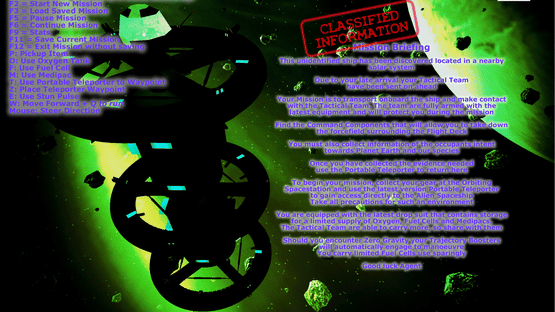 An unidentified spacecraft has been discovered in a nearby solar system... as our most experienced Agent, you are tasked to explore the craft and determine its purpose, then report back to the command center.