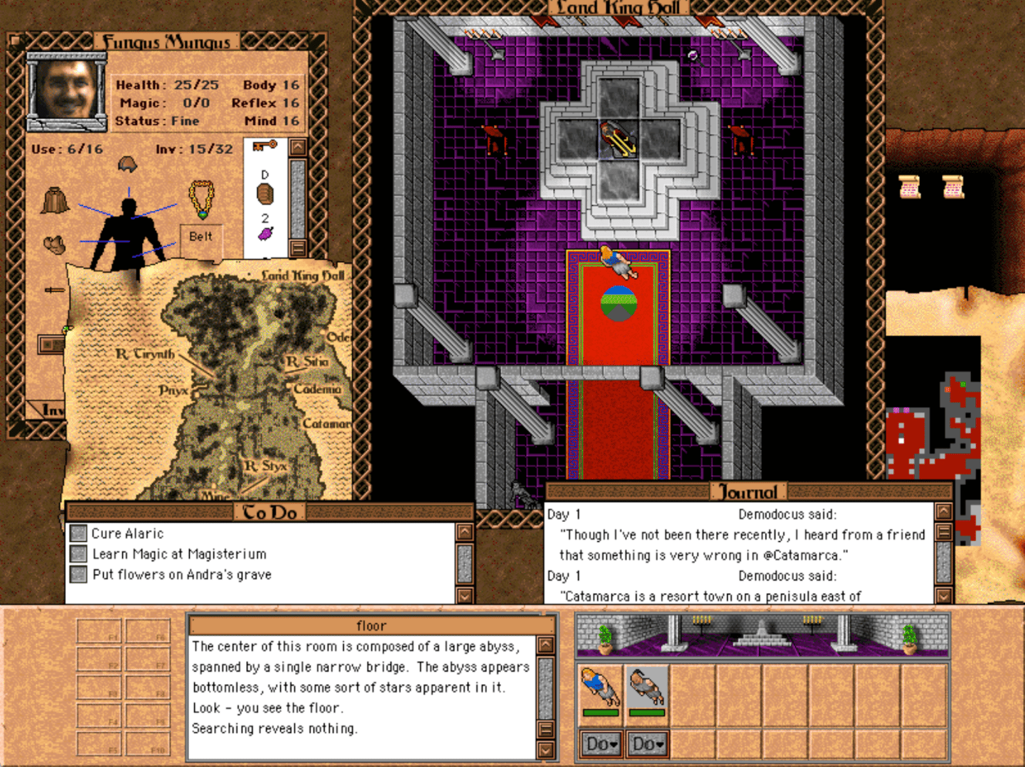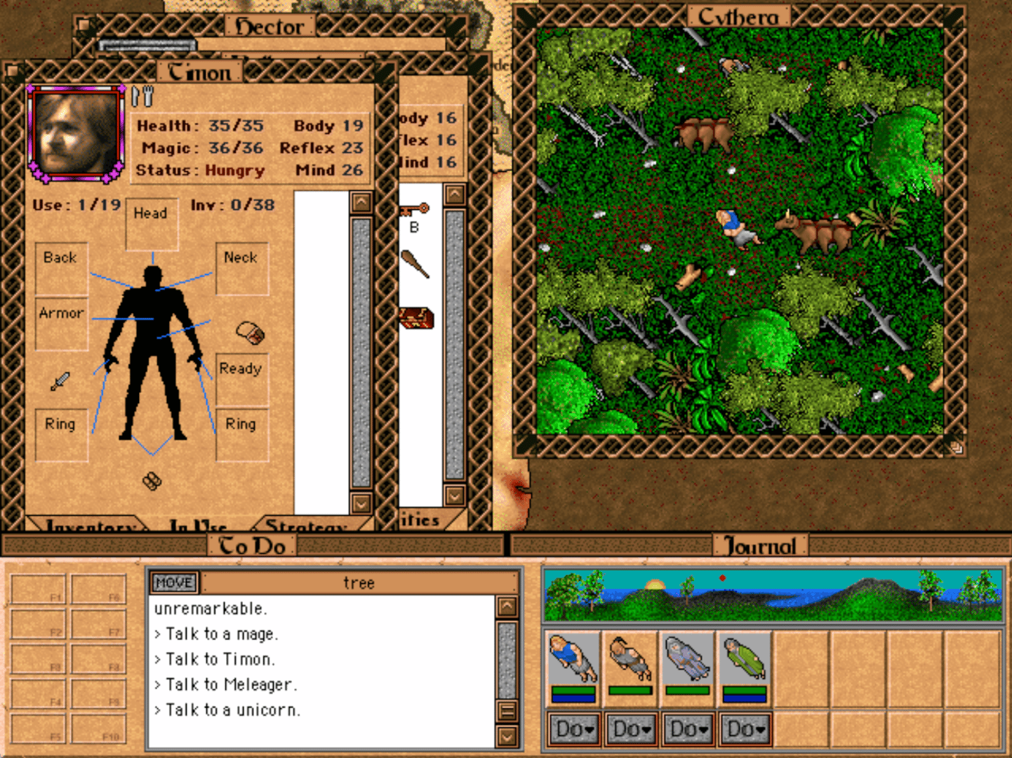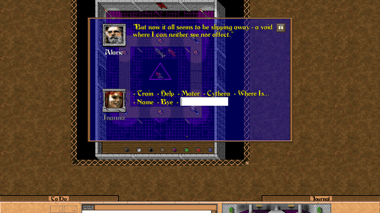 Cythera is an RPG that could be described as the Ultima of the Macintosh, as it focuses on immersion and interactivity, just like the DOS classic Ultima VII. It features single-character world exploration, a high degree of interactivity with objects in the environment, a hunger system, and keyword-based dialogues.