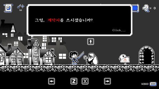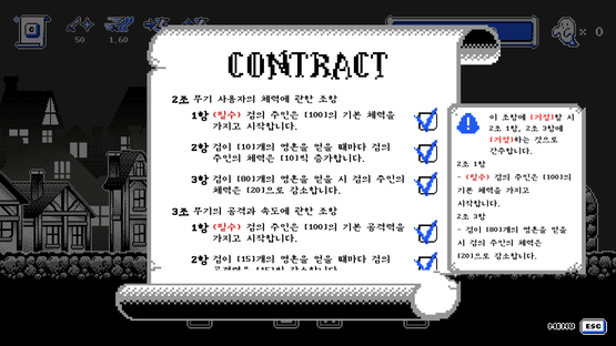 "Contract" is a 2D action platformer where you're the legendary hero. But there are monsters at the village you're staying, and they need your help. You borrow the treasured sword from the village... after you sign a strange contract. Can you figure out the mystery behind all these monsters?