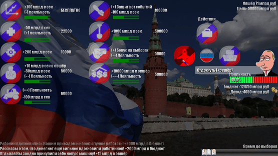 Put In Bad is a simulation game that will allow you to plunge into the difficult life of the president! Objective: to save enough money and leave the presidency.