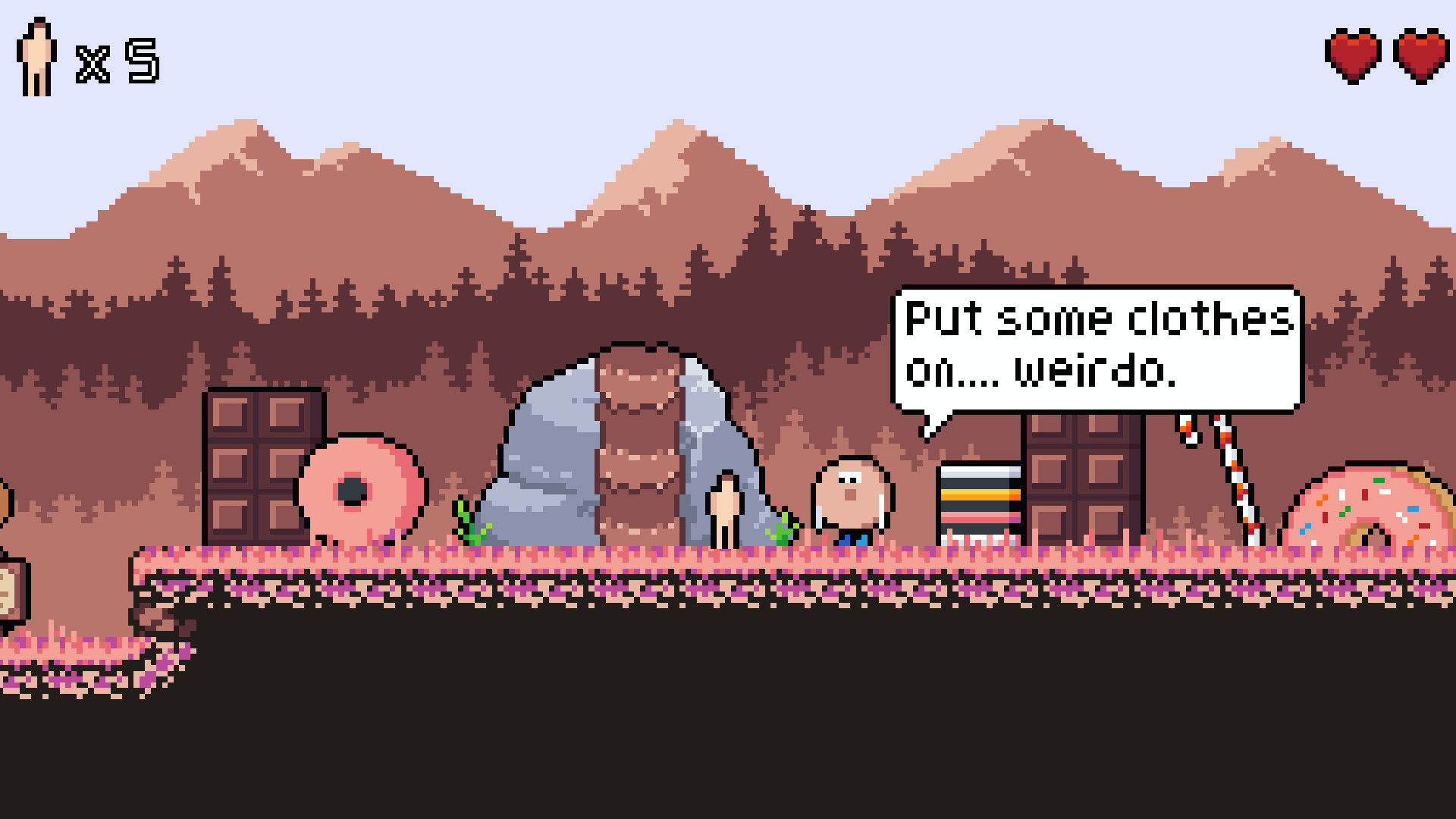 Help Naked Little Dude collect the shopping for his wife and avoid the dog house! This is also a clothes free adventure.