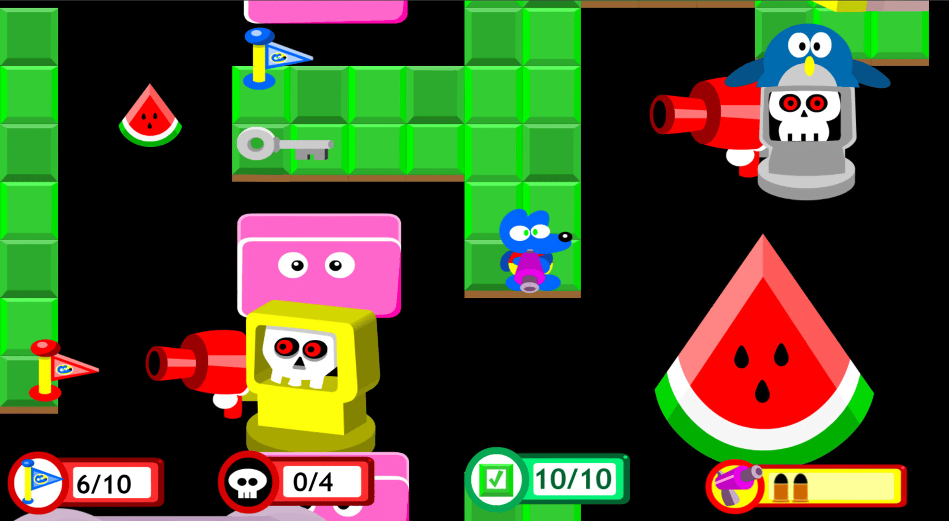 Red Skull and his gang are spreading terror trough Chess Land. Destroy the enemies and follow your journey until the end.