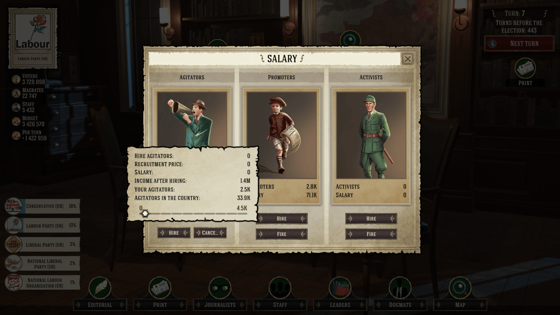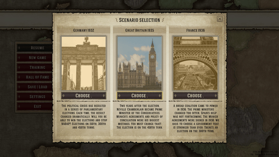 In the unique world of this political simulator, you travel to Europe, 1933-1935, to become the party leader in one of the following countries: Germany, France, or England. You have a real chance to become the winner of WWII even before it begins...