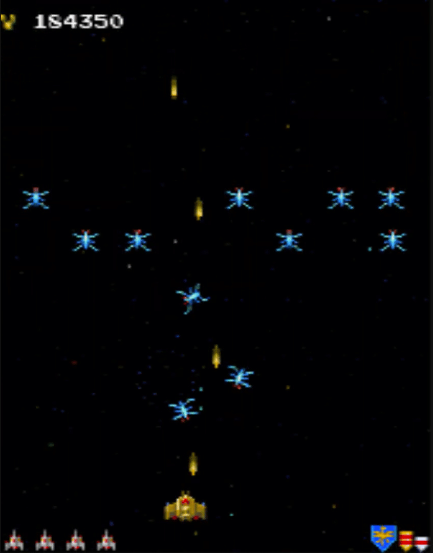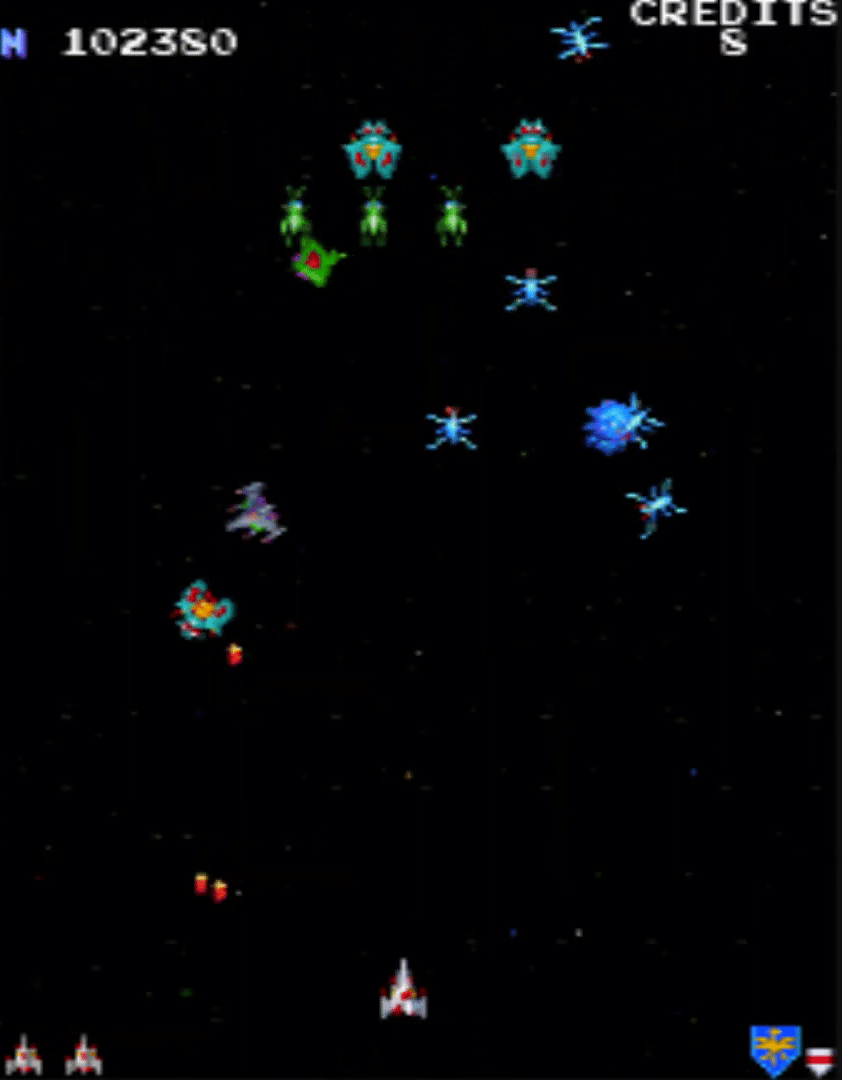 Galaga Arrangement is the 6th edition in the Galaga sub-series. It is a fixed shooter arcade game featured in the 1995 arcade cabinet Namco Classic Collection Vol. 1.