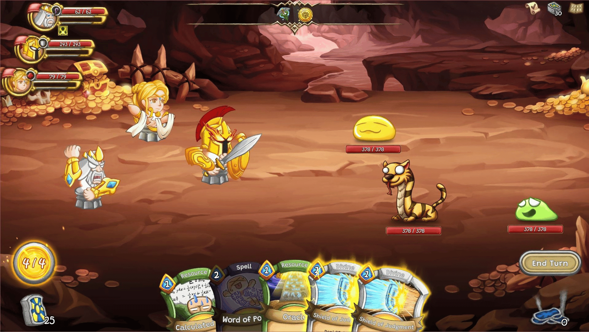 A roguelite deckbuilding card game that demands tactics and switching in battle. Unlock and pick your divine battle team, develop your very own strategy and deck builds, preview levels and choose your path, and survive mythological bosses to defeat Azathoth in each playthrough.