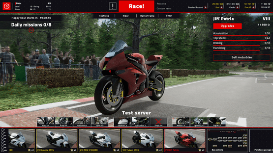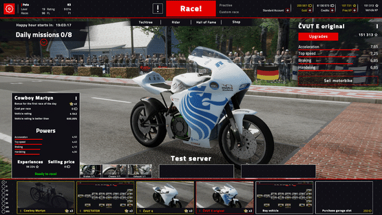 Engine Evolution is a multiplayer racing game that uses similar principles as World of Tanks - with each PvP race, against 11 other players, you gain experience and credits, for which you can buy various upgrades for your bike, or unlock the next bike.
