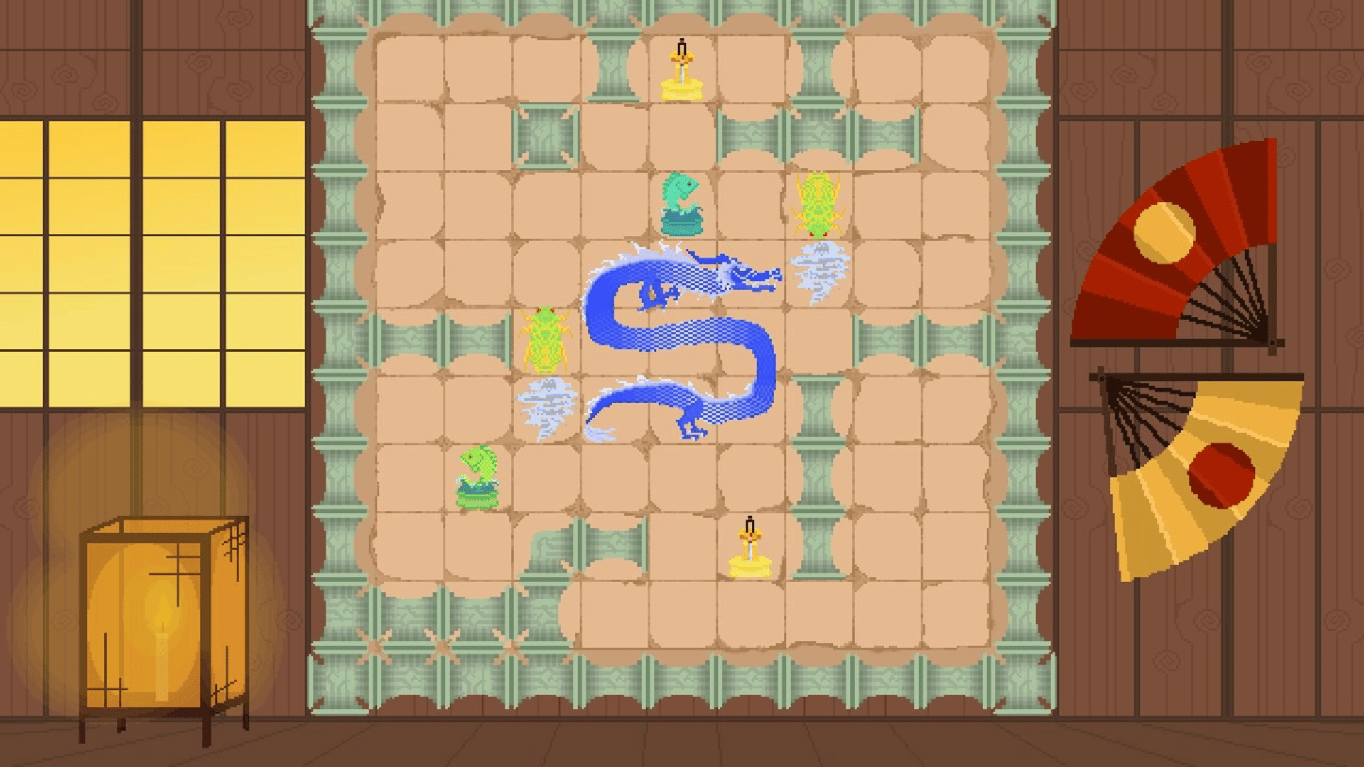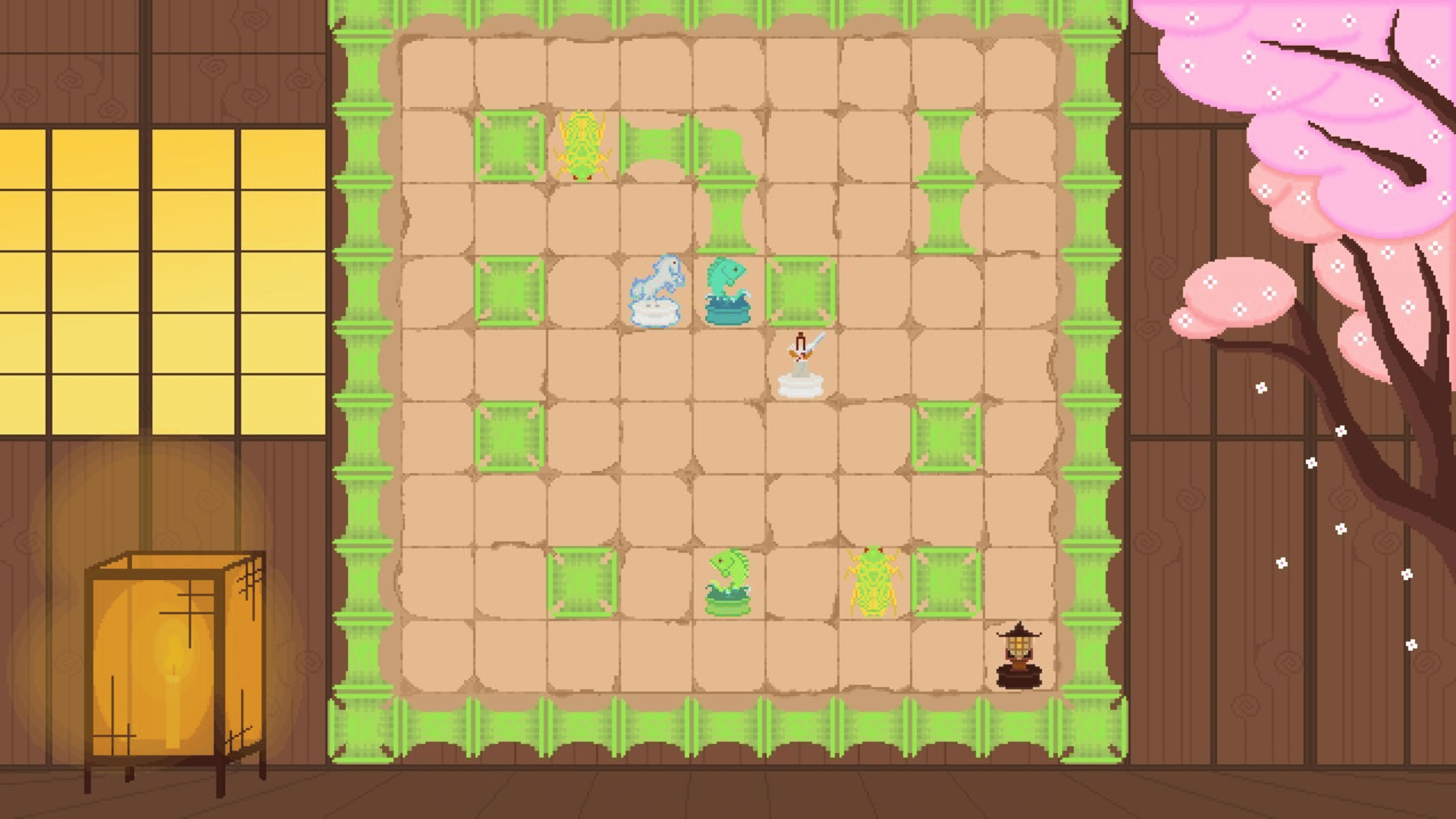 Jade Cicada is a puzzle game with mirror-like movement of figures where you have to simultaneously get two figures to certain areas along the way bypassing tricky enemies and ..... walls.