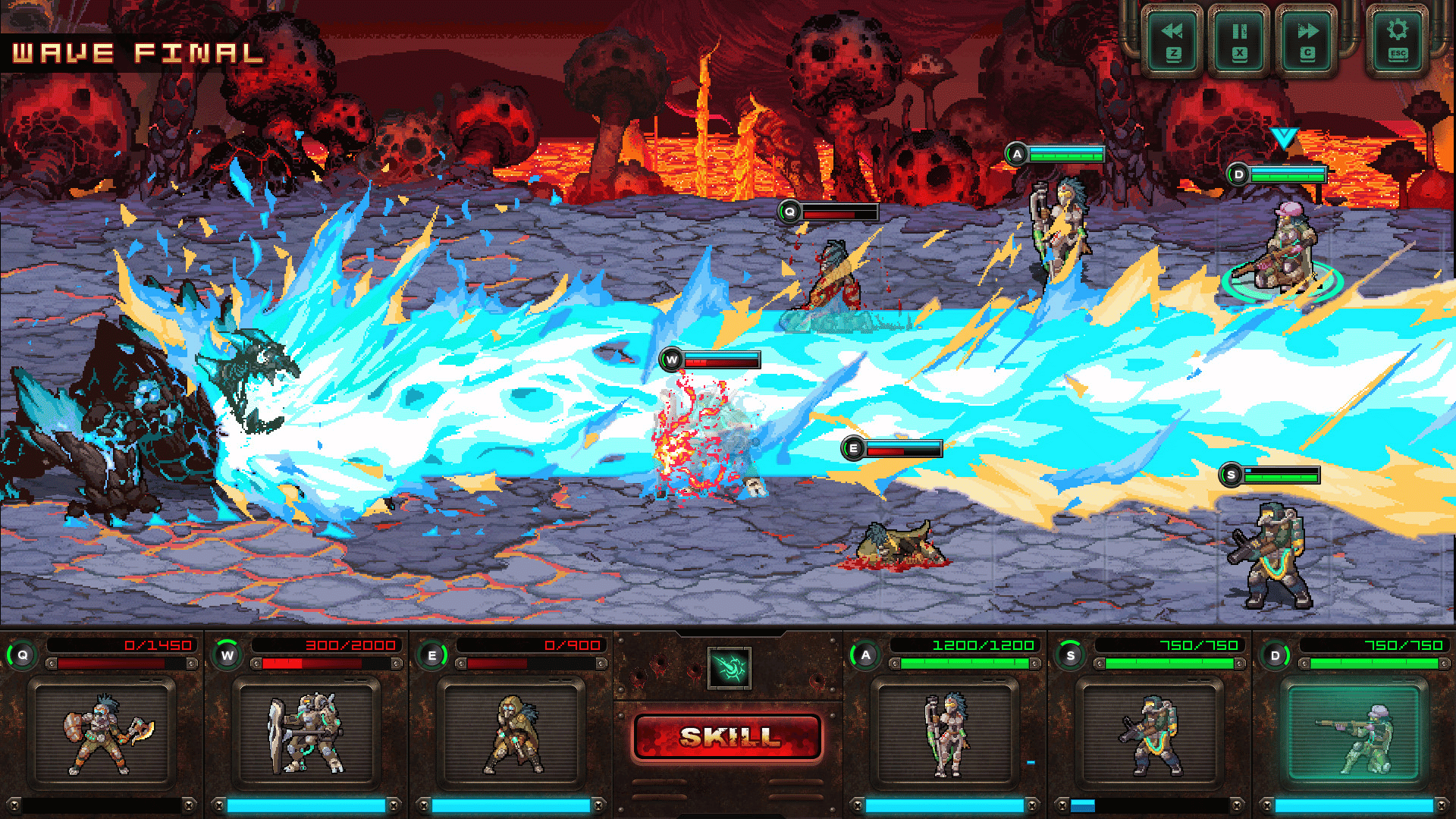 Iron Vulture is a real-time strategy line defender. You can command six soldiers in real-time combat, move them across lanes, and use their abilities to eliminate wave after wave of mutated creatures.