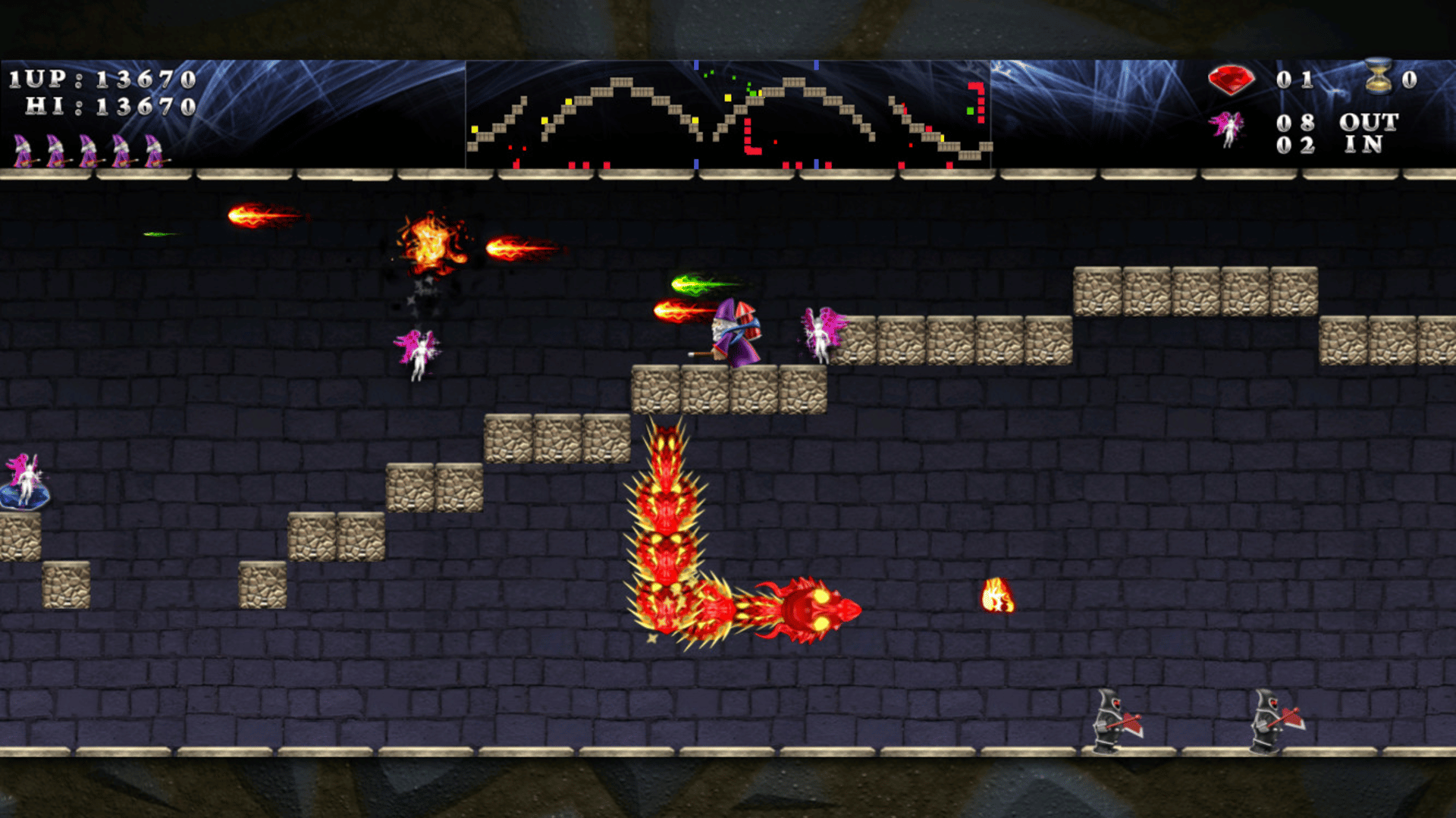 Up for some retro arcade action? Extra weapons, upgrades, smart bombs etc are your favorite tools? Then this great arcade clone is for you! Survive waves of evil creatures in this fantastic, fast paced side scroller. If you like games like Defender, Data Storm or Drop Zone, you will LOVE Fairy Fire!